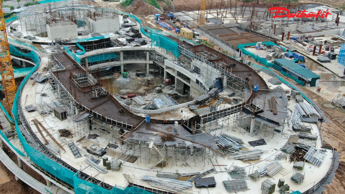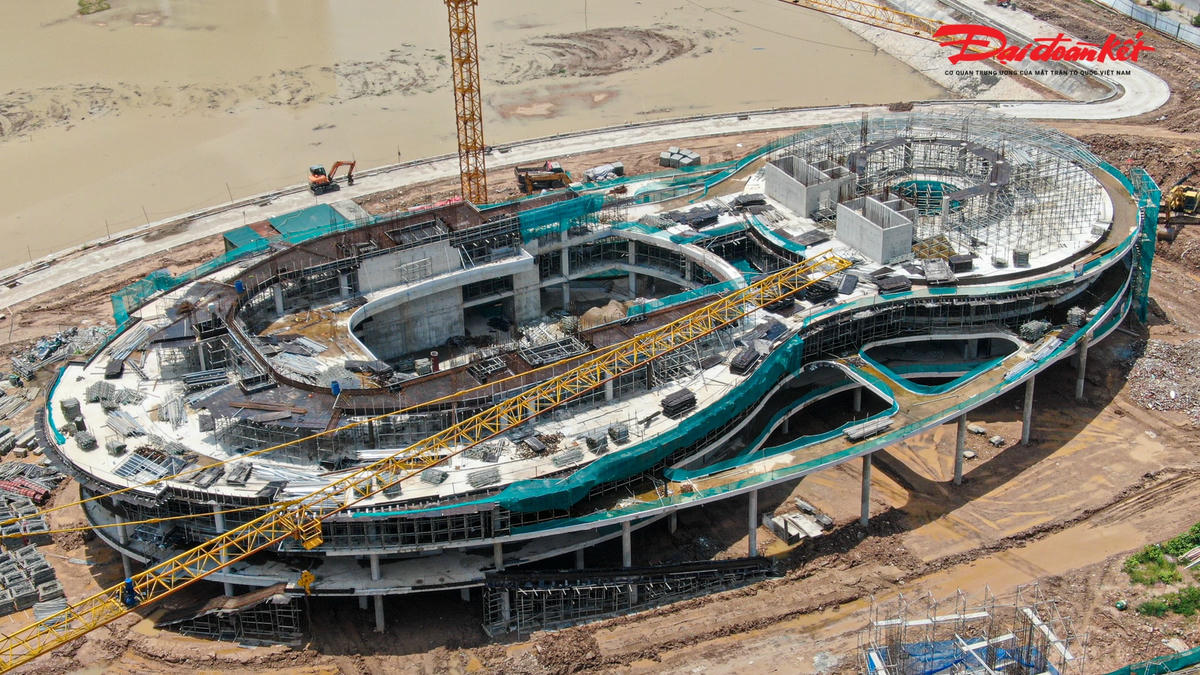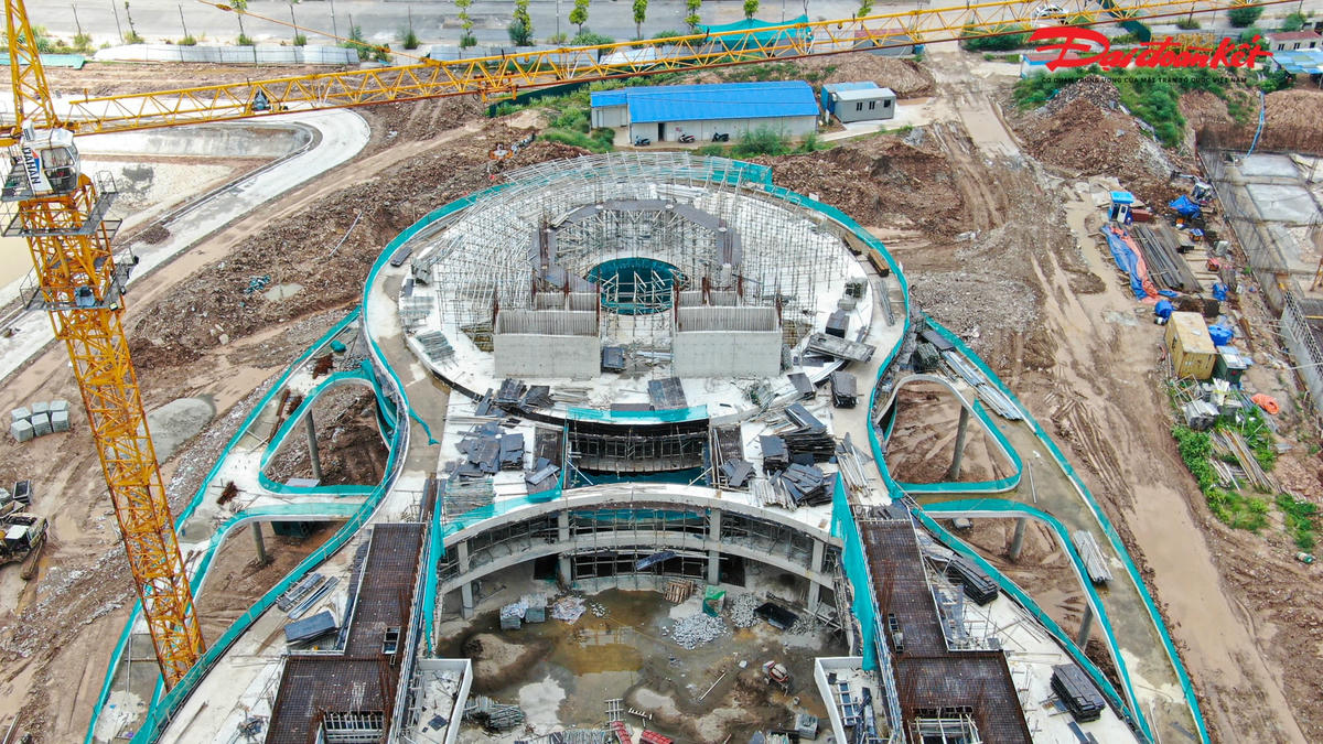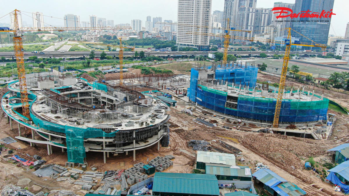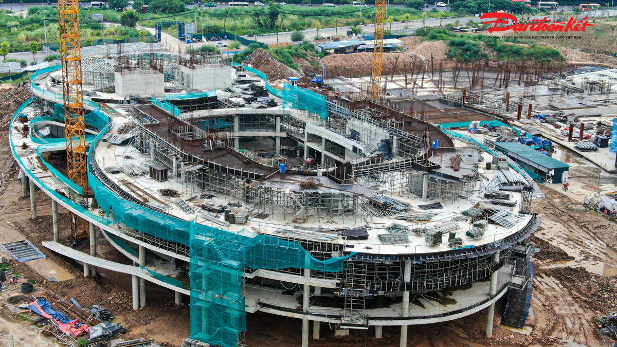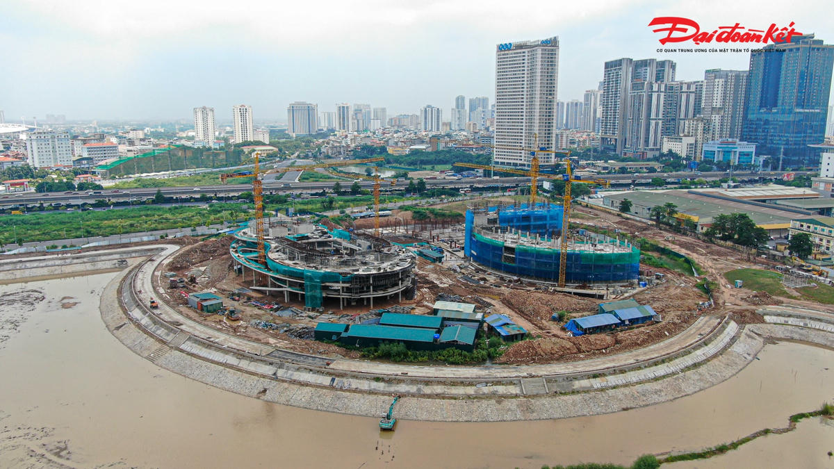 Cung Thiếu nhi mới của Thành phố Hà Nội đang được xây dựng tại khu công viên hồ điều hòa CV1 với diện tích gần 40.000 m2 có tổng mức đầu tư hơn 1.300 tỷ đồng. Sau 9 tháng thi công, nhiều hạng mục của dự án bắt đầu dần thành hình, dự kiến hoàn thành, đưa vào sử dụng năm 2024.