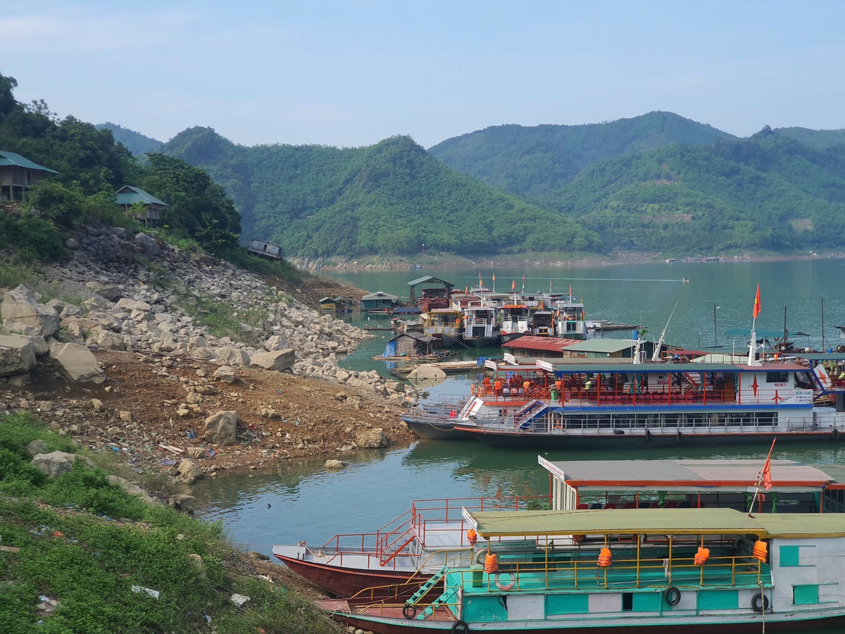 Cận cảnh hồ thủy điện Hòa Bình vào thời kỳ cạn nước phát điện