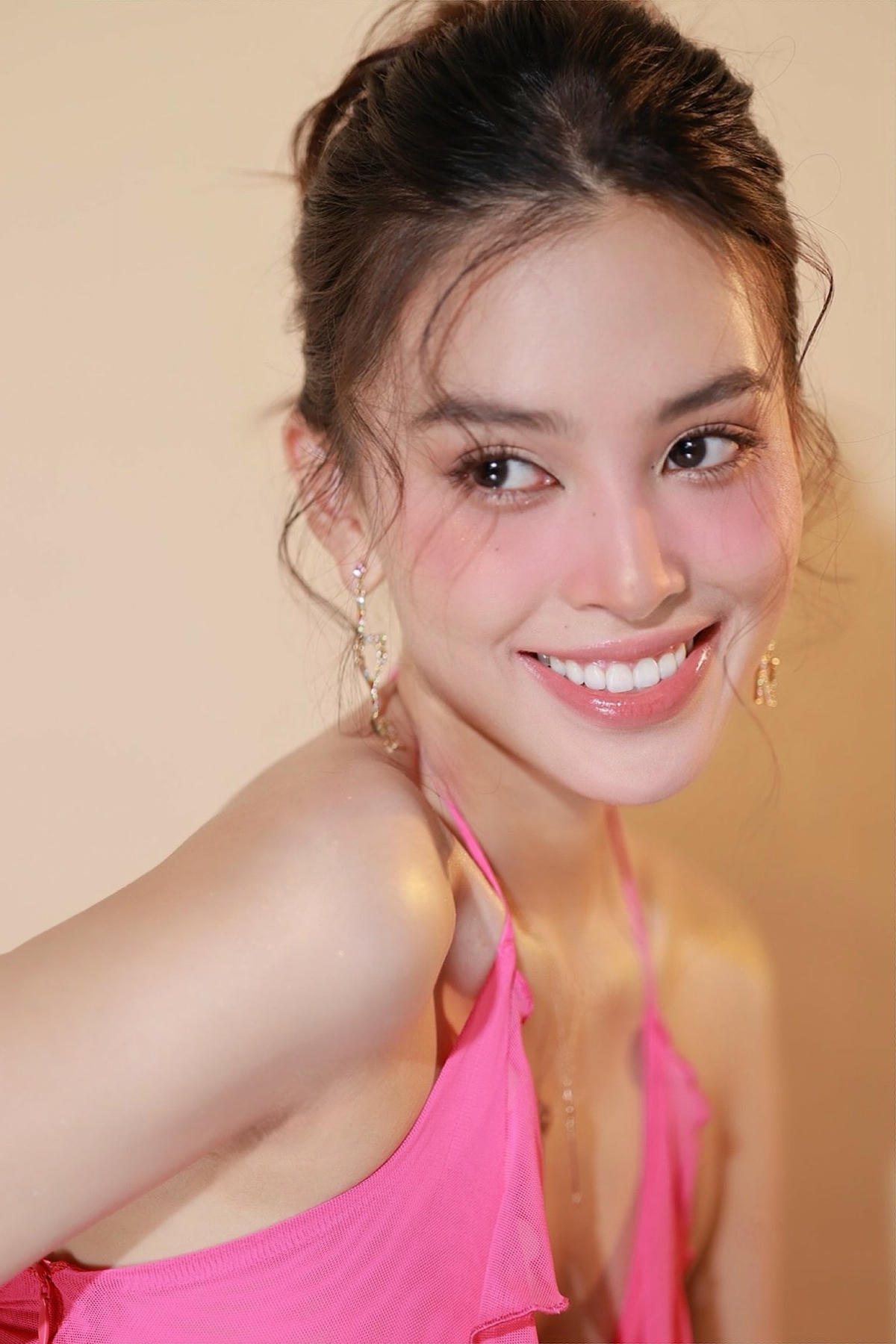 Ở bộ ảnh lần này, nàng hậu sinh năm 2000 lựa chọn bộ cánh màu hồng cùng lối make up nhẹ nhàng khoe lưng trần vô cùng quyến rũ, "nét nào ra nét đó" trong từng bức ảnh cũng đã khiến cho người xem đắm chìm với nhan sắc đỉnh cao của nàng hậu được mệnh danh là đẹp nhất Việt Nam.
