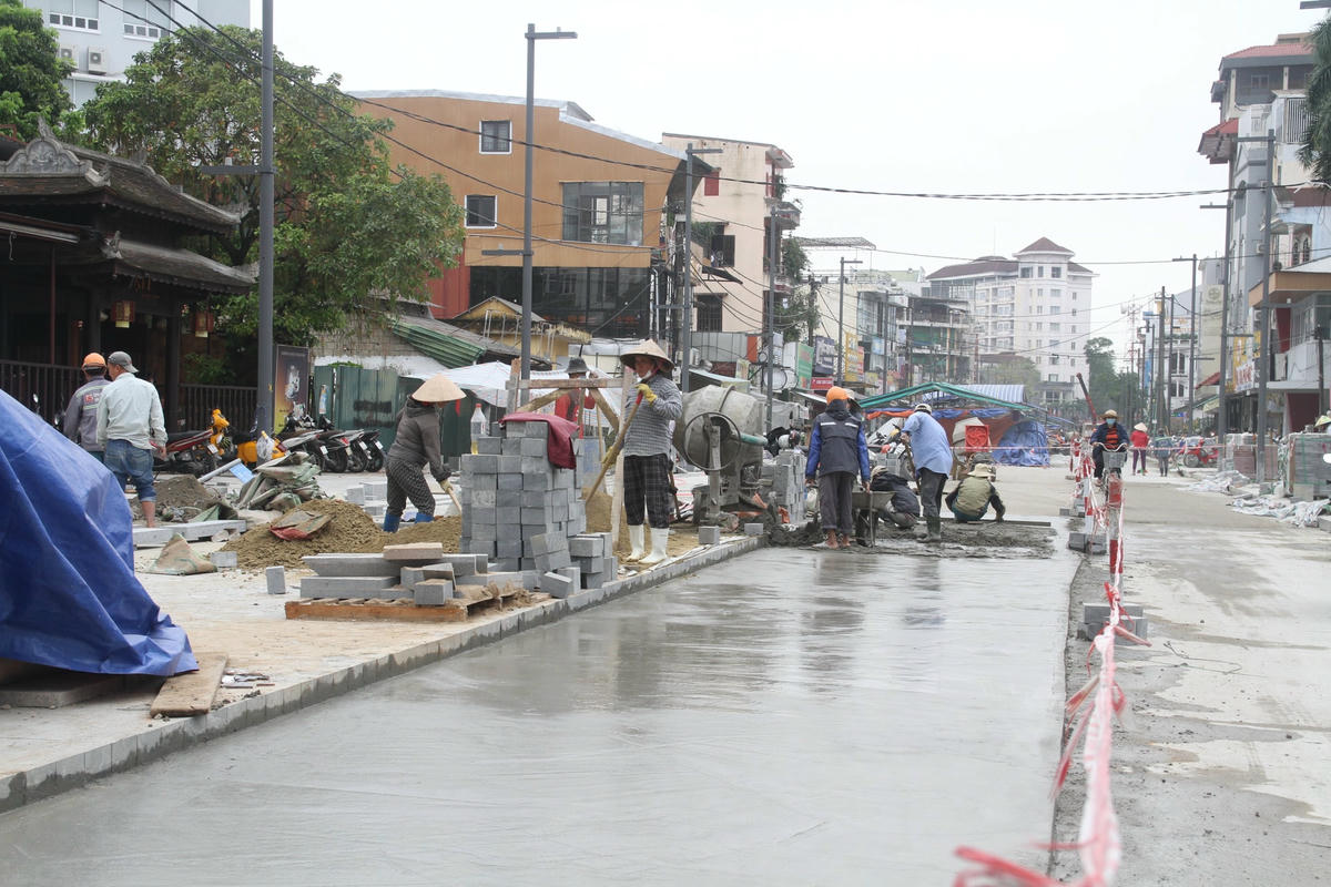 Tranh thủ thời tiết thuận lợi, chủ đầu tư cùng các đơn vị thi công dự án phố đi bộ Hai Bà Trưng (thành phố Huế, tỉnh Thừa Thiên - Huế) đang nỗ lực từng ngày để sớm hoàn thành và đưa vào sử dụng vào tháng 1/2023.