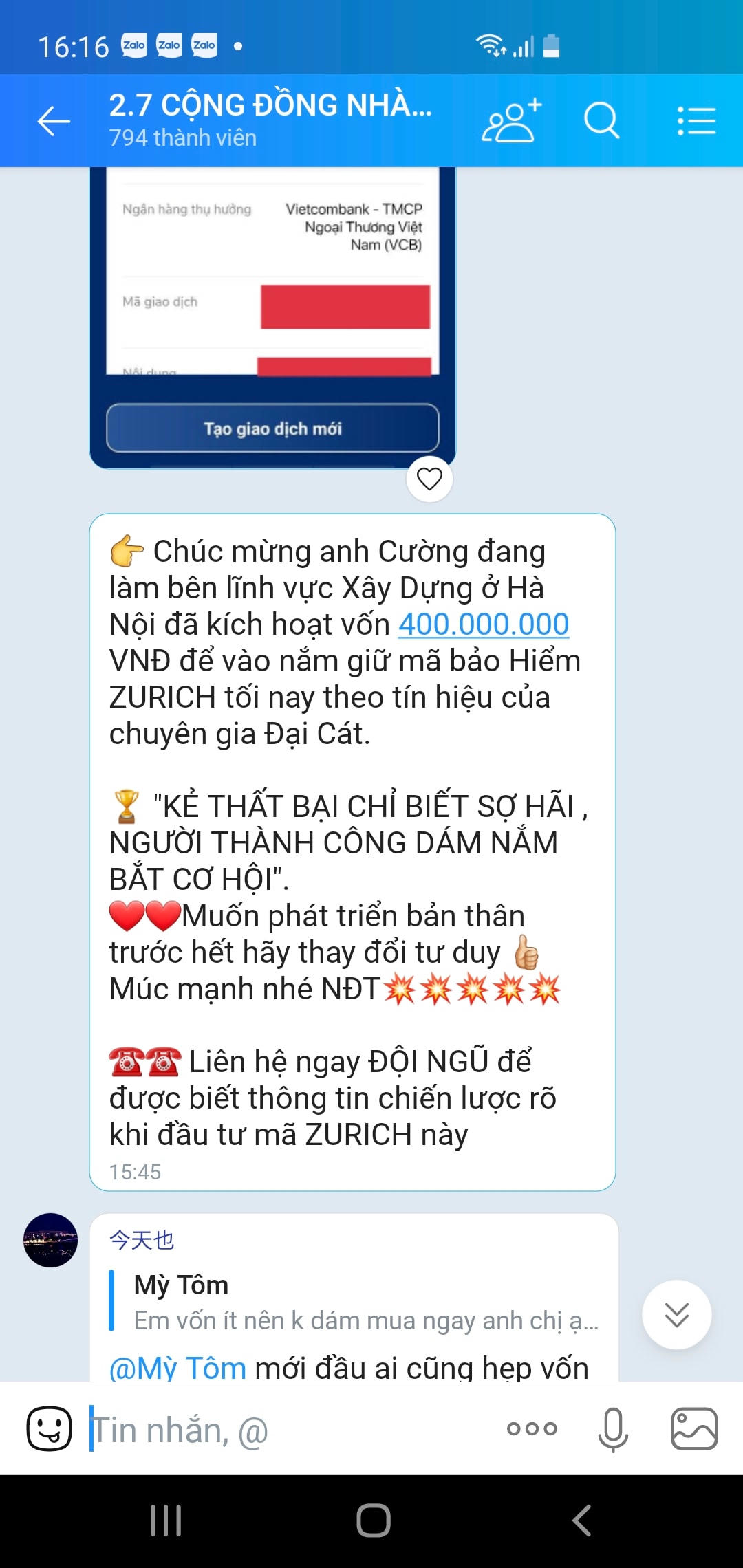 Anh Nguyễn Hoàng Hiệp (Gia Lâm, Hà Nội) kể, anh có chơi chứng khoán và tài khoản “cháy” 50%. Một hôm anh được mời gia nhập vào nhóm chát zalo với lời chào, sẽ dạy chơi chứng khoán phái sinh để gỡ lỗ. Tham gia nhóm chát 2 ngày thì thị trường chứng khoán đón nhận thông tin Ngân hàng Nhà nước giảm lãi suất điều hành, chủ nhóm chát lại hướng dẫn 50 thành viên trong nhóm với lời mời gọi: Chứng khoán cơ sở đang quay trở lại, nếu các anh, chị tin tưởng, chuyển sang nhóm kín để được “phím” các mã sinh lời nhanh.