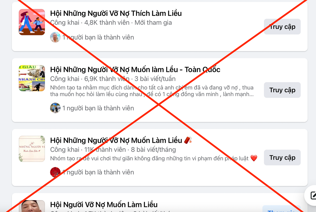 Thời gian gần đây, rất nhiều những hội nhóm tiêu cực xuất hiện trên Facebook. Không chỉ có số lượng thành viên đông, từ vài nghìn đến cả chục nghìn người, những hội nhóm như: “Hội những người vỡ nợ muốn làm liều”, “Hội những người muốn tự tử”, “Hội những người đã từng đi tù”, “Hội những người từng đi cai nghiện ma túy”,… còn liên tục đăng tải và chia sẻ những thông tin tiêu cực, lệch lạc. Thậm chí còn lôi kéo, xúi giục và kích động nhau thực hiện những hành vi liều lĩnh, vi phạm pháp luật. Đáng nói hơn, rất nhiều thành viên trong các hội nhóm này có tuổi đời còn rất trẻ.