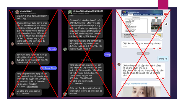 Cụ thể, các bài đăng liên tục giả mạo các nội dung như: “Tuyển các chiến sĩ tý hon cho chương trình chúng tôi là chiến sỹ nhí – Đài truyền hình Việt Nam VTV; Cần tuyển 500 mẫu nhí cho chương trình chúng tôi là chiến sỹ nhí 2023 của Đài truyền hình Việt Nam VTV thực hiện; Chương trình sẽ được phát sóng vào 20h thứ 6 hàng tuần trên kênh VTV3 Đài truyền hình Việt Nam”...