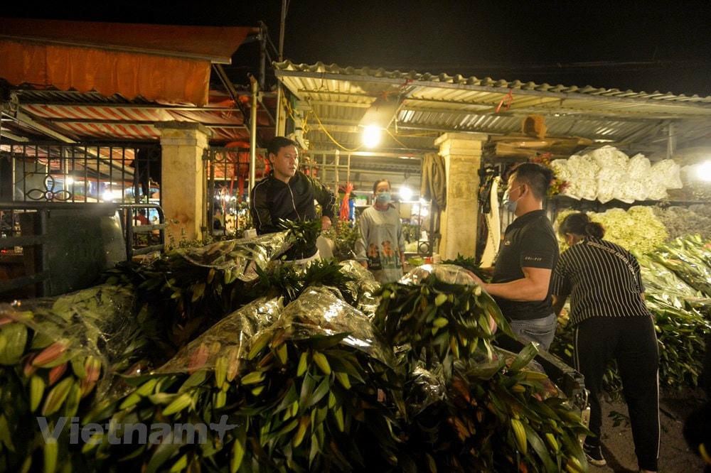 Đêm trước ngày 8/3, chợ hoa Quảng An (Hà Nội) lại càng nhộn nhịp, tấp nập cảnh kẻ bán người mua. Ảnh: Minh Sơn/Vietnam+. Khác với cảnh ảm đạm, ế hàng năm ngoái, chợ hoa lớn nhất Thủ đô lại tấp nập người mua, kẻ bán khi ngày Quốc tế Phụ nữ 8/3 đang cận kề. Ảnh: Minh Sơn/Vietnam+. Khác với cảnh ảm đạm, ế hàng năm ngoái, chợ hoa lớn nhất Thủ đô lại tấp nập người mua, kẻ bán khi ngày Quốc tế Phụ nữ 8/3 đang cận kề. Ảnh: Minh Sơn/Vietnam+. Cảnh các xe chở hàng trăm bông hoa di chuyển từng chút một trong khu chợ đã trở lại. Ảnh: Minh Sơn/Vietnam+. Cảnh các xe chở hàng trăm bông hoa di chuyển từng chút một trong khu chợ đã trở lại. Ảnh: Minh Sơn/Vietnam+. Người dân Thủ đô có thể đến xem, lựa chọn mua hoa lẻ hoặc buôn theo nhu cầu. Ảnh: Minh Sơn/Vietnam+ Năm nay, giá các loại hoa hướng đến Ngày quốc tế phụ nữ đa phần đều tăng nhẹ do nguồn cung hạn chế. Ảnh: Minh Sơn/Vietnam+. Theo ghi nhận, giá hoa hồng ta, cành ngắn là 10 ngàn đồng/bó/50 bông, hồng ngoại, cành dài từ 400 - 500 ngàn đồng/bó/50 bông, hoa đồng tiền từ 35 - 45 ngànđồng/bó/10 bông, hoa ly từ 100- 150 ngàn đồng/bó/5 bông to, tường vi 90 ngàn đồng/bó. Các loại hoa khô từ 150 ngàn đồng/bó. Ảnh: Minh Sơn/Vietnam+. Các chủ sạp bán hoa ở đây cho biết, gần dịp 8/3 nên giá hoa tăng nhẹ tuy nhiên người mua vẫn tốt hơn so với năm ngoái. Ảnh: Minh Sơn/Vietnam+. Người dân Thủ đô đã quen tới đây để lựa chọn hoa mỗi khi có dịp đặc biệt. Ảnh: Minh Sơn/Vietnam+. Những sạp bán hoa đã được phủ đủ màu sắc sặc sỡ trước thềm ngày Quốc tế phụ nữ. Ảnh: Minh Sơn/Vietnam+. Các thương lái phải thức trắng đêm để nhập hàng, phân loại và đưa ra thị trường trong những ngày này. Ảnh: Minh Sơn/Vietnam+. Hoa hồng, loài hoa không thể thiếu trong dịp 8/3 được bày bán rất nhiều. Ảnh: Minh Sơn/Vietnam+. Chợ hoa Quảng An nhộn nhịp nhất lúc khoảng 11- 12 giờ đêm. Ảnh: Minh Sơn/Vietnam+. Đây cũng là thời điểm nhiều người dân lựa chọn để đi chợ vì sẽ kiếm được hoa tươi, giá ưng ý. Ảnh: Minh Sơn/Vietnam+. Chợ hoa Quảng An còn đa dạng với nhiều loại hoa khác như thạch thảo, salem, violet, cúc vàng, thực dược, lay ơn… Ảnh: Minh Sơn/Vietnam+. Các loại hoa tranh thủ đua sắc trong dịp lễ đặc biệt tôn vinh phụ nữ. Ảnh: Minh Sơn/Vietnam+.