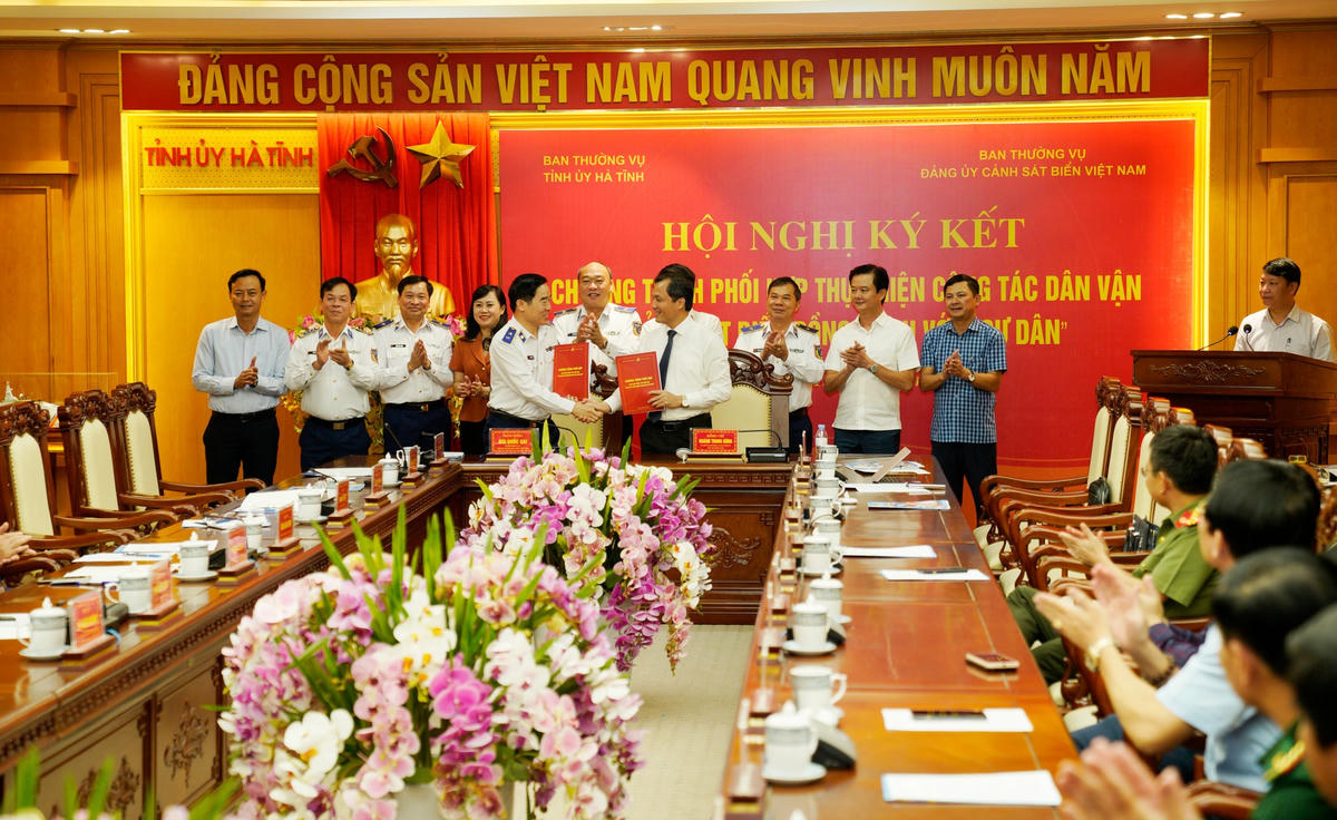 Ngày 13/10, Ban Thường vụ Tỉnh ủy Hà Tĩnh và Ban thường vụ Đảng ủy Cảnh sát Biển Việt Nam đã tổ chức hội nghị ký kết Chương trình phối hợp thực hiện công tác dân vận "Cảnh sát biển đồng hành với ngư dân".