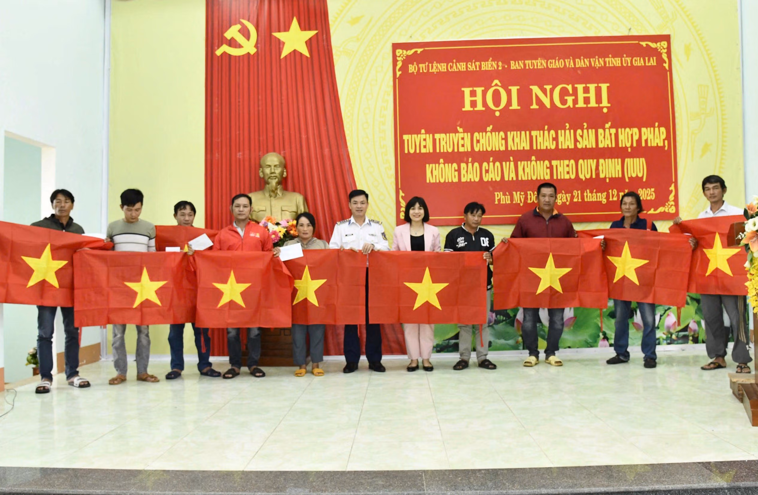 Tại xã Phù Mỹ Đông, đoàn công tác tổ chức tuyên truyền chống khai thác hải sản bất hợp pháp, không báo cáo và không theo quy định (IUU) cho hơn 150 cán bộ, đảng viên và ngư dân, góp phần nâng cao nhận thức, trách nhiệm trong hoạt động khai thác thủy sản bền vững.