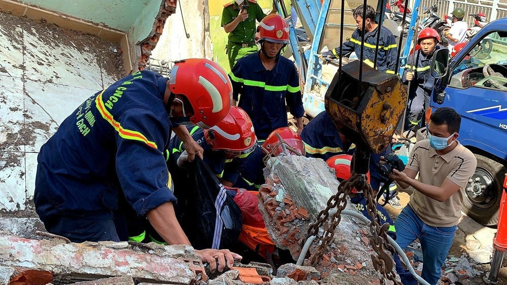 Cảnh sát giải cứu một nạn nhân khỏi bức tường đổ sập