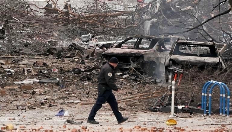 Cửa kính các tòa nhà vỡ tan, cây cối gãy đổ, nhiều ô tô bốc cháy sau vụ nổ có chủ đích tại trung tâm Nashville sáng 25/12.