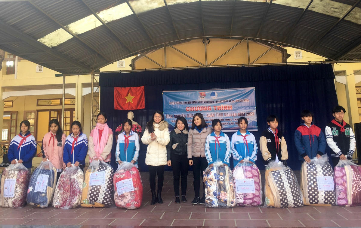 Ngày 15/12, Đoàn Khối Cơ quan và Doanh nghiệp tỉnh Cao Bằng phối hợp với Huyện đoàn Trần Đề (Sóc Trăng), Huyện đoàn Hà Quảng tổ chức Chương trình tình nguyện mùa Đông - Xuân tình nguyện 2023.