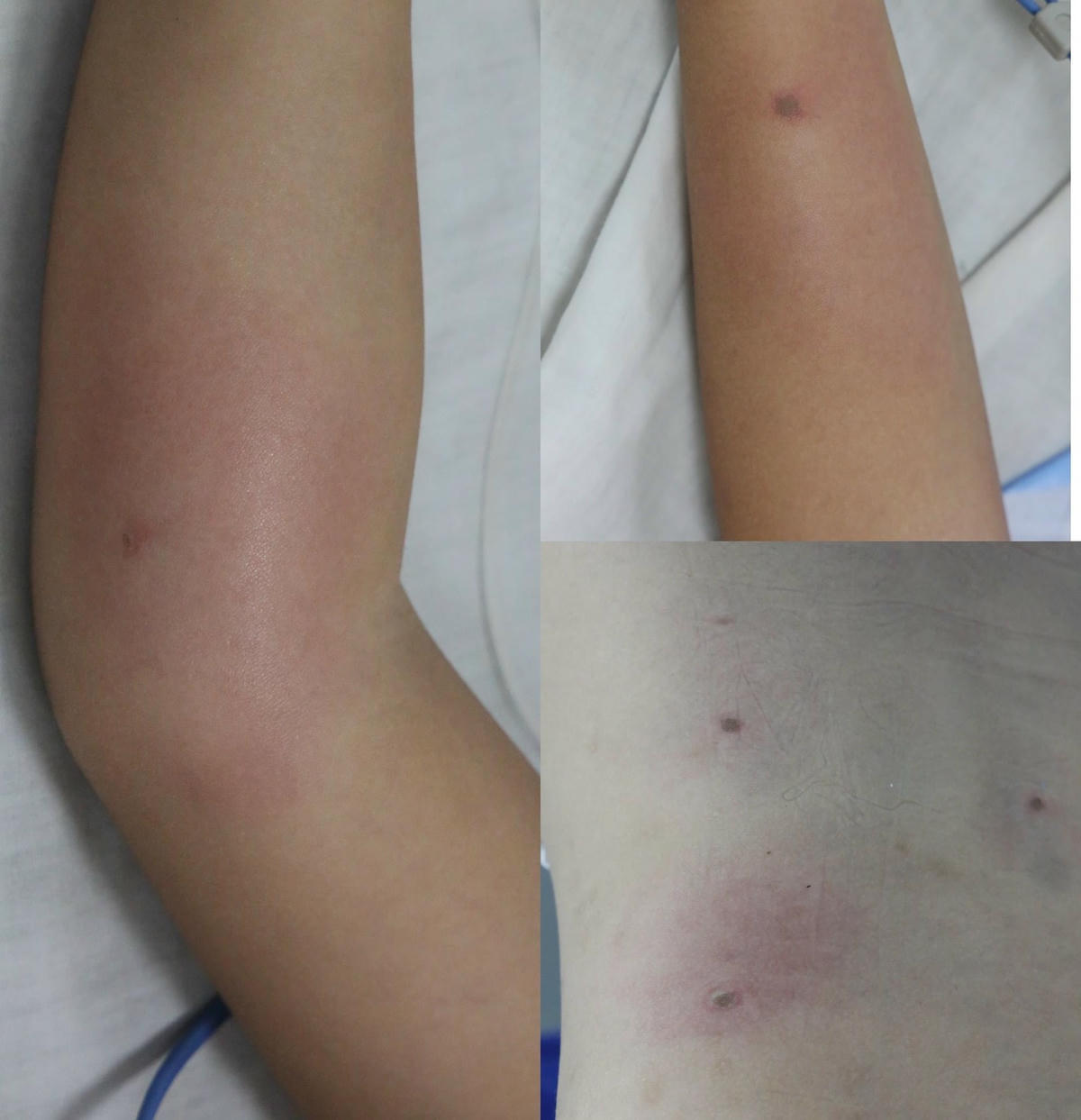 Khai thác bệnh cảnh được biết, gia đình bé có nuôi một tổ ong vò vẽ. Trong khi đang chơi đùa ngoài sân, bé gái này bị tổ ong rơi trúng đầu và bị đốt 25 nốt.