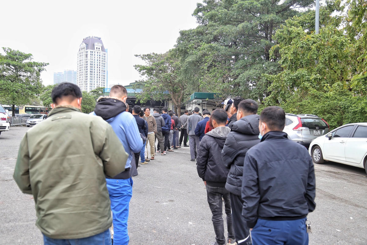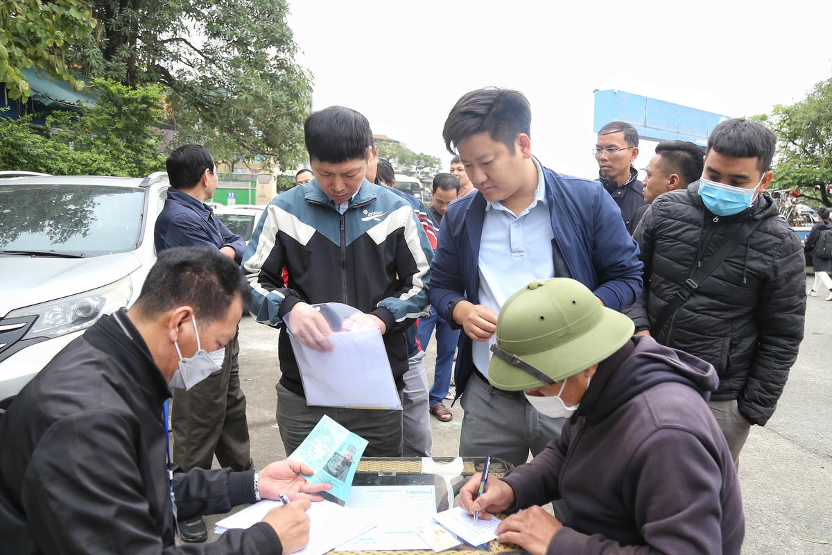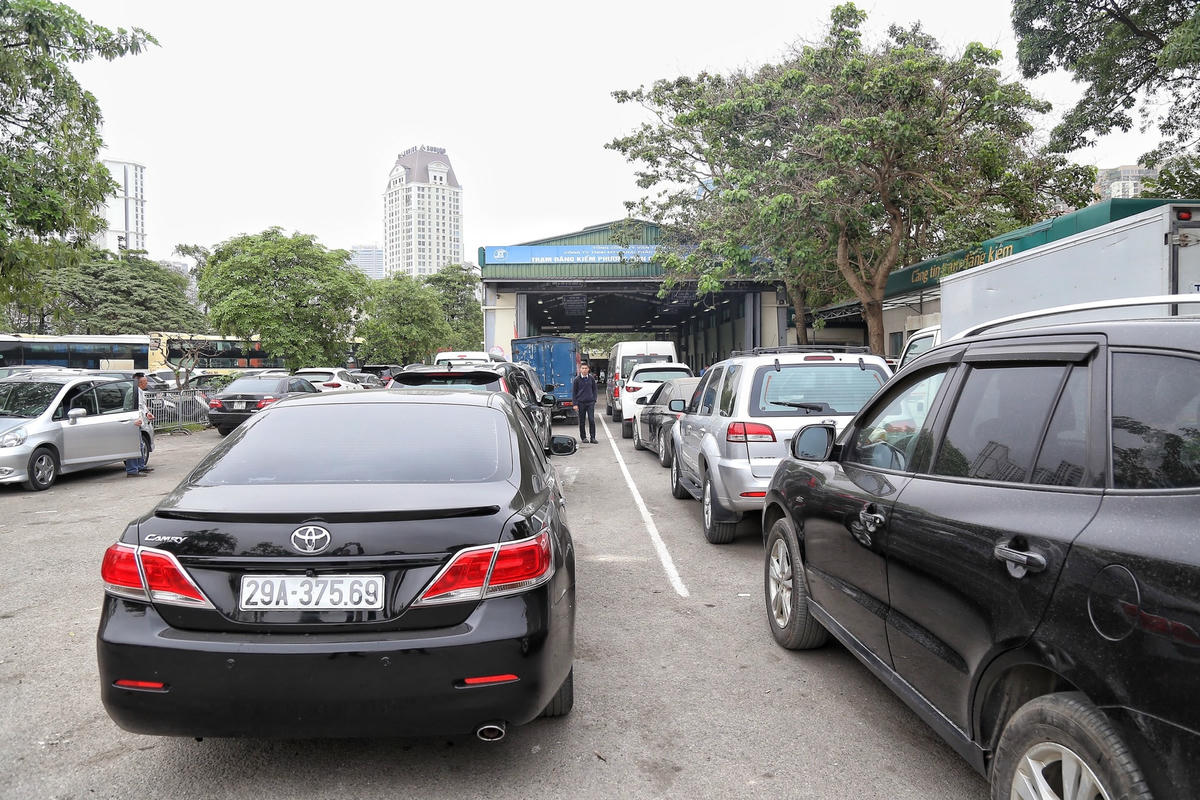 Sáng 13/3 dù không còn cảnh đông đúc, xe ô tô tràn ra đường trước cửa trung tâm đăng kiểm 2903S nhưng hàng dài tài xế vẫn chờ xếp hàng nhận phiếu hẹn. Để xe được đăng kiểm sớm nhất nhiều tài xế phải cắt cử người thân đứng chờ để nhận phiếu.