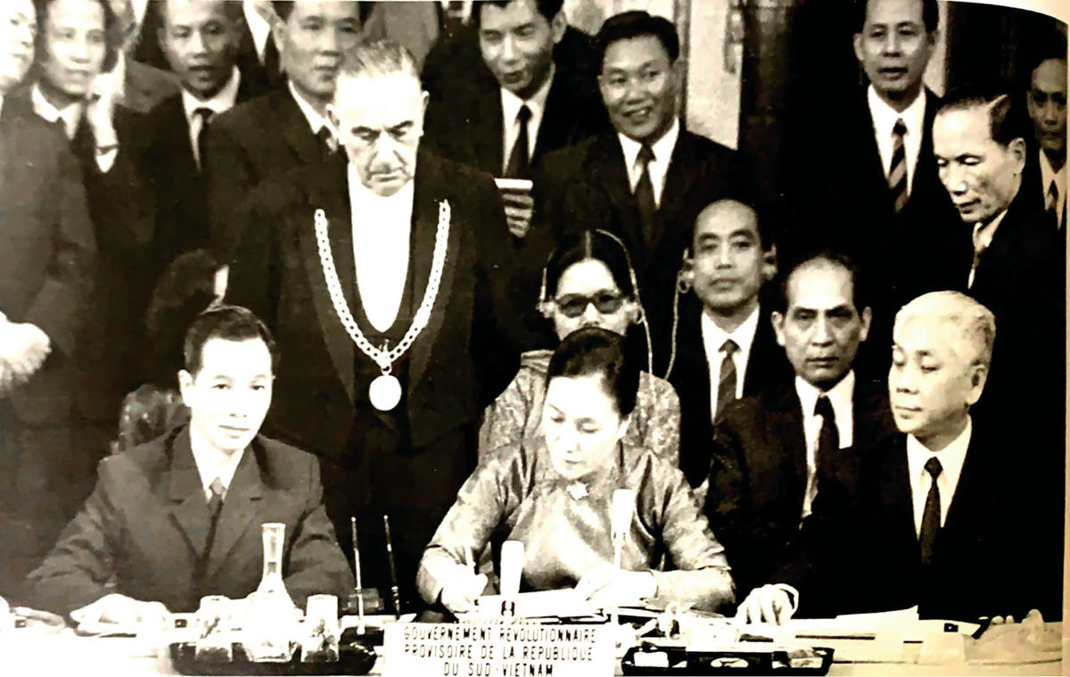 Bộ trưởng Nguyễn Thị Bình ngay từ buổi đầu đặt chân đến Paris, đã được vinh danh là “Bà hoàng Việt Cộng”, người nữ chiến sĩ duyên dáng, khiêm nhường và kiên quyết, vị trưởng đoàn thường đưa ra trước bàn đàm phán nhiều giải pháp lay động, cũng là người với tư cách Bộ trưởng Ngoại giao Chính phủ Cách mạng lâm thời Cộng hòa Miền Nam Việt Nam ký vào văn bản Hiệp định ngang hàng với Bộ trưởng Ngoại giao Hoa Kỳ.