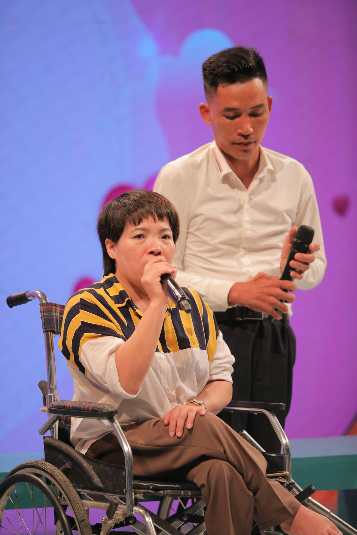 Sinh ra trong một gia đình nông dân nghèo khó, sau cơn sốt ác tính năm 3 tuổi, chị Đặng Thị Thanh Bình (sinh năm 1976, Sóc Sơn, Hà Nội) bị liệt hai chân. Cả cuộc đời gắn với chiếc xe lăn, song chị Bình chưa bao giờ buông xuôi số phận. Không có đôi chân lành lặn, nhưng có đôi tay, chị Bình quyết tâm Nam tiến, học nghề may để kiếm thêm thu nhập tự nuôi sống bản thân. Và chính ở nơi đất khách quê người, chị đã gặp gỡ và nên duyên với anh Nguyễn Văn Quân (sinh năm 1984, Tiền Giang).