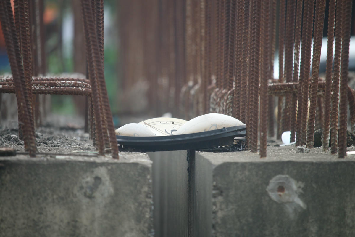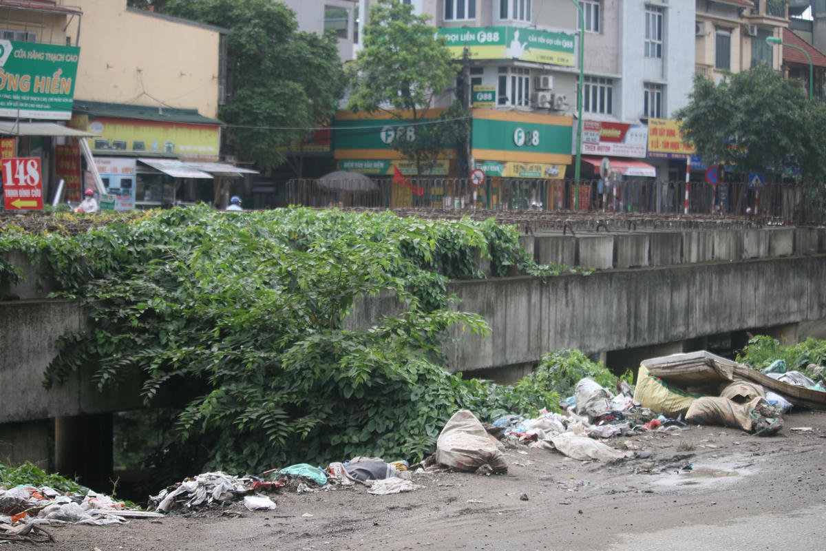 Trước số 148 đường Trịnh Đình Cửu (Thanh Xuân, Hà Nội) đoạn đường thuộc tuyến vành đai 2,5 vẫn ngưng trệ sau một thời gian dài. Các thanh sắt rỉ mục, hoen ố, mọc cỏ dại và có nhiều rác thải người đi đường quăng lên đó.