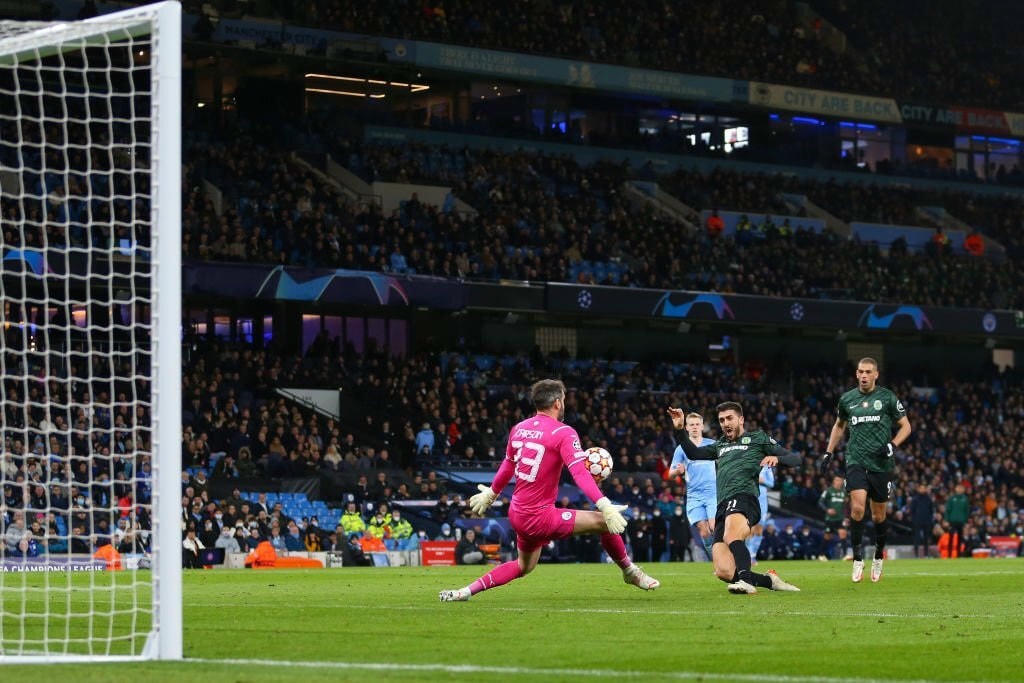 Man City cho hậu vệ 19 tuổi CJ Egan-Riley ra mắt Champions League, anh thi đấu bên phải của hàng thủ. Cơ hội ghi bàn đầu tiên của trận đấu tới ở phút 21, Islam Slimani dứt điểm từ phía phải, Aymeric Laporte đã hỗ trợ thủ thành Ederson phá bóng ra ngoài.