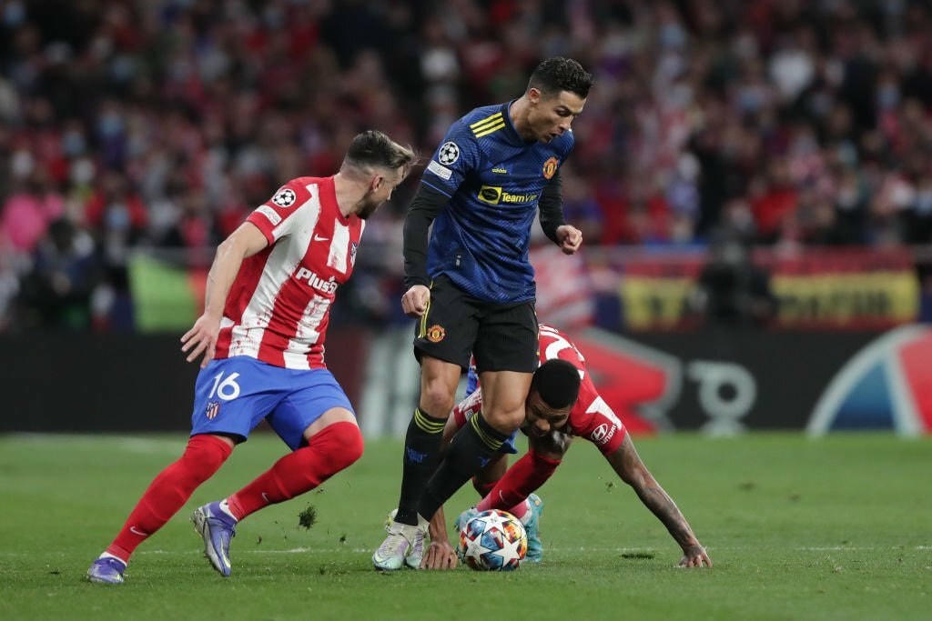 HLV Rangnick bố trí đội hình khá lạ khi Man Utd thi đấu trên sân của Atletico Madrid. Mặc dù có cả Wan-Bissaka và Dalot nhưng chiến lược gia người Đức đã bố trí trung vệ Lindelof ra đá hậu vệ cánh phải. Ở tuyến giữa, Pogba và Fred là cặp tiền vệ trung tâm. Do Cavani đang chấn thương nên Ronaldo tiếp tục được xếp đá chính ở vị trí trung phong.