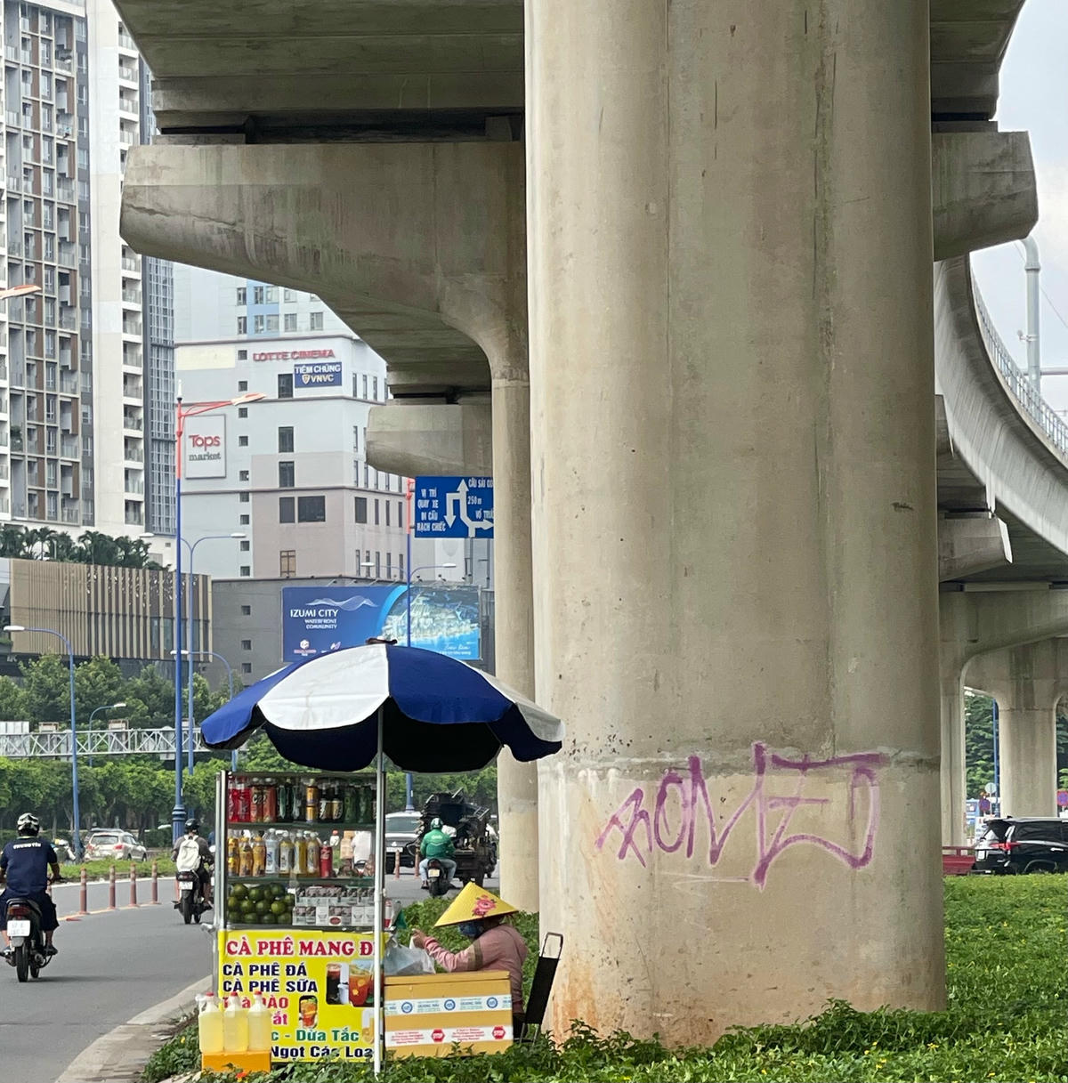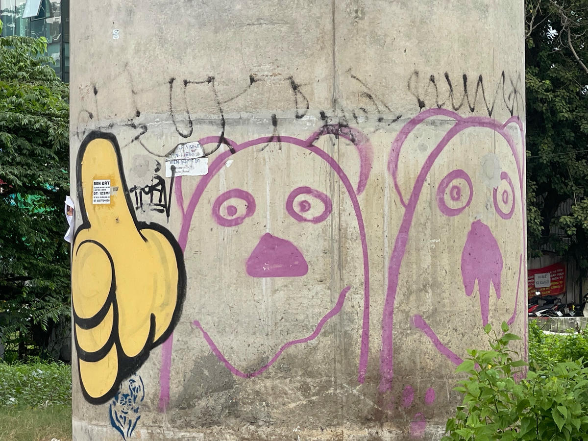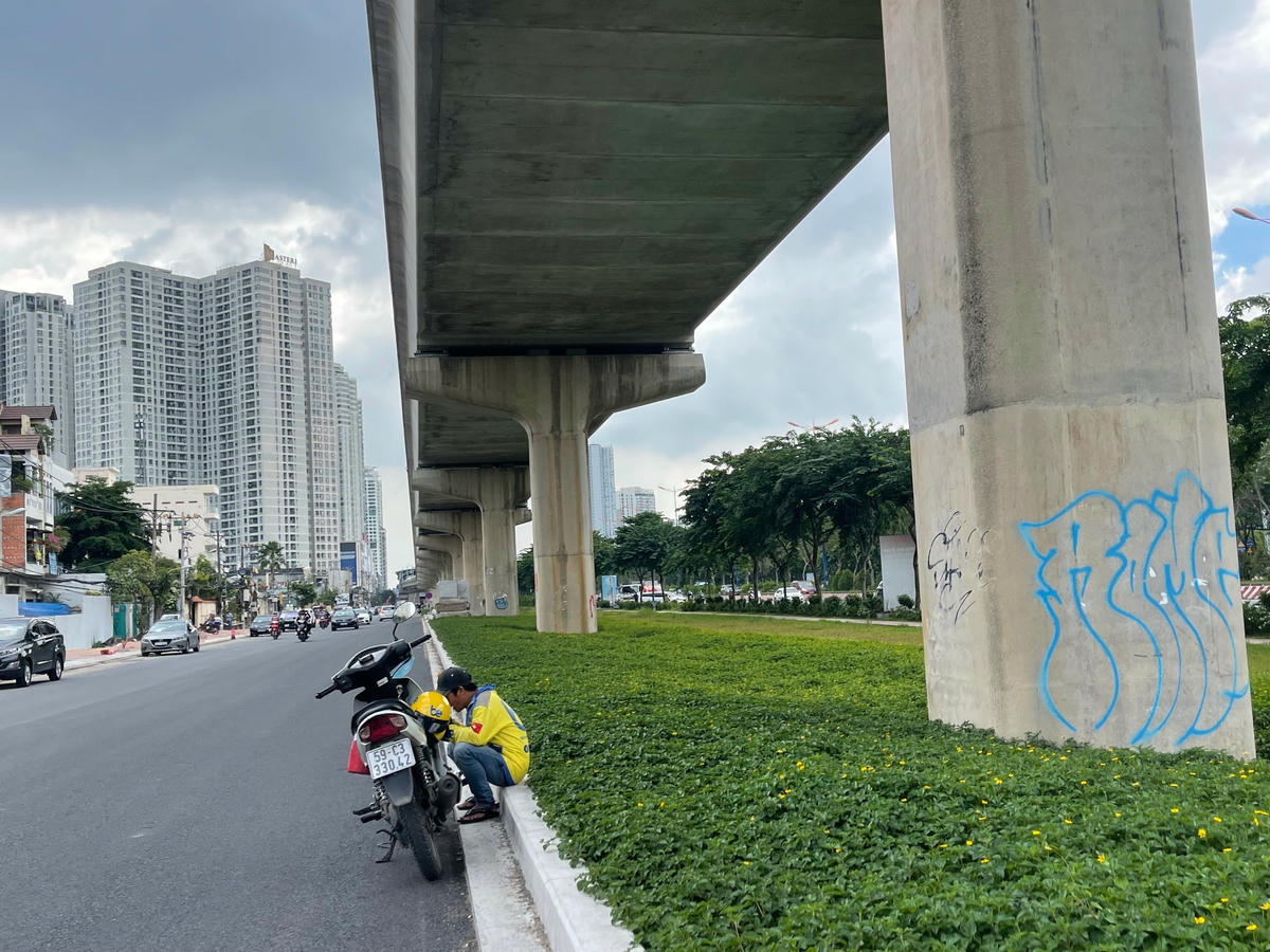 Ngày 12/9, khảo sát dọc tuyến một đoạn đường dài khoảng 5km trong tổng số gần 20km của tuyến metro số 1 Bến Thành-Suối Tiên đoạn đi qua TP Thủ Đức và quận Bình Thạnh, chúng tôi ghi nhận rất nhiều hình vẽ khác nhau bằng nhiều loại màu trên các hạng mục của dự án. Các hình vẽ này tập trung chủ yếu ở các trụ cầu metro, trụ đường. Ngoài các hình vẽ kiểu graffiti (kiểu nghệ thuật đường phố) nhưng rất thô sơ và nhếch nhác thì còn có các biểu quảng cáo rao vặt dán đè lên các công trình metro.