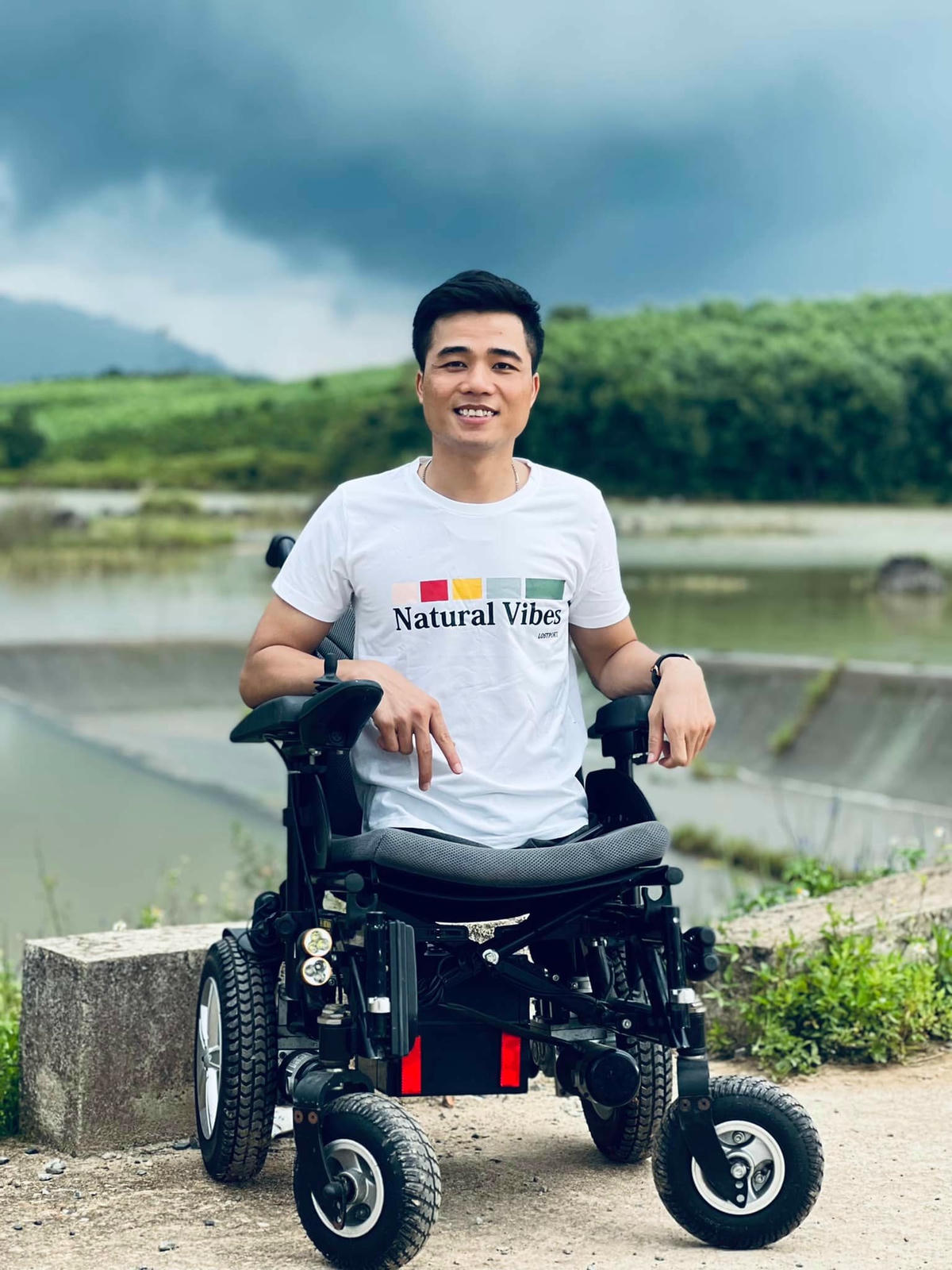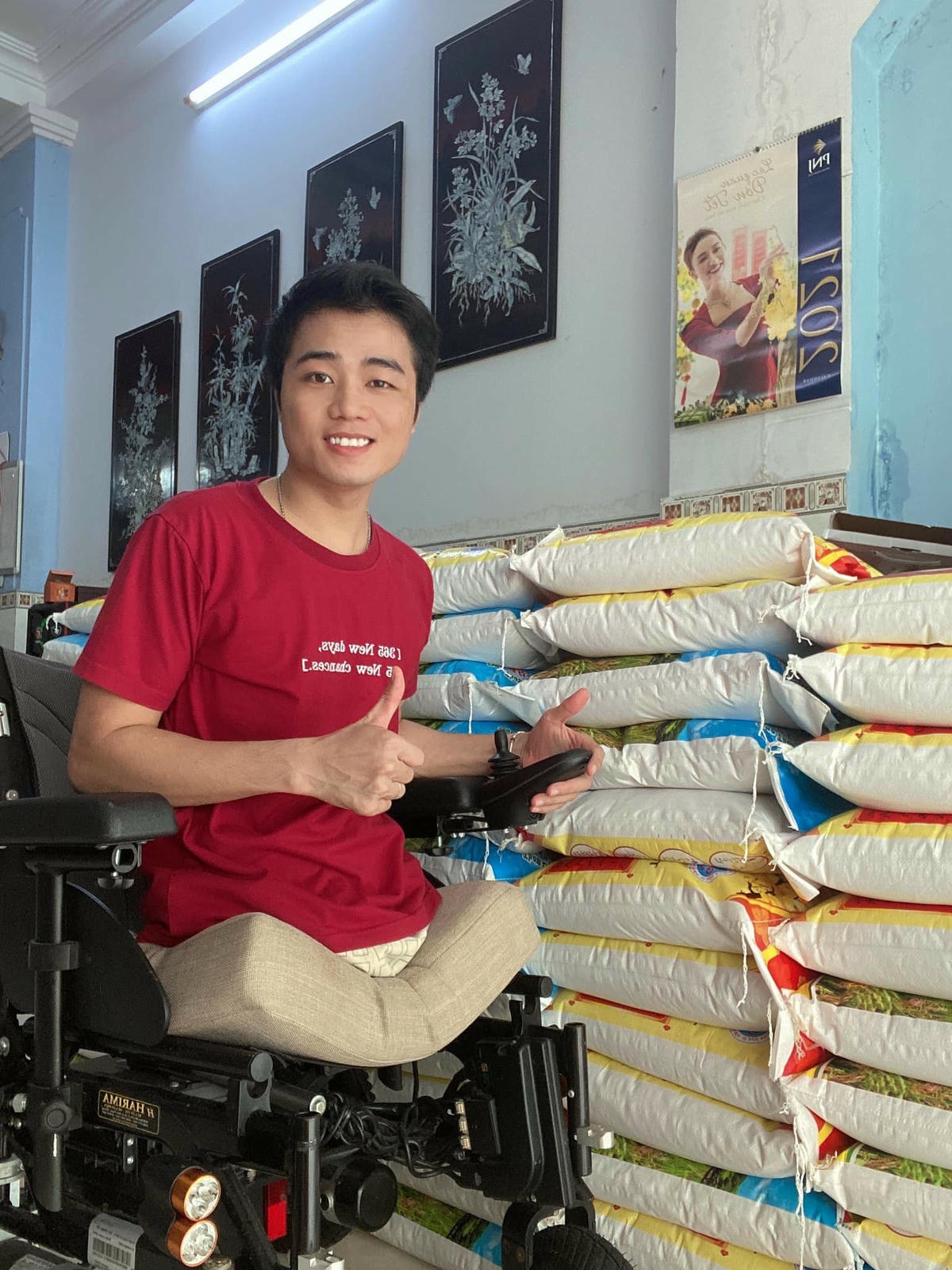 Anh nghẹn ngào chia sẻ: “Mình hiểu nỗi đau của gia đình quá lớn, nếu như mình cứ nằm một chỗ và buồn bã thì các thành viên trong nhà cũng sẽ tiêu cực theo. Lúc đó mình vực dậy, quyết định mua xe lăn, tập hít đất để có thể chống cơ thể ra khỏi giường. Gia đình phấn khởi, ba mẹ vui hơn, mình cũng bắt đầu kiếm tiền bằng cách bán hàng vực dậy kinh tế.