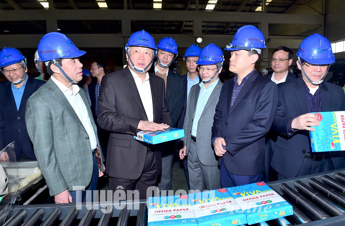 Trước đó, Đoàn công tác của Trung ương đã tham quan các sản phẩm giấy của Nhà máy Bột giấy và Giấy An Hòa.