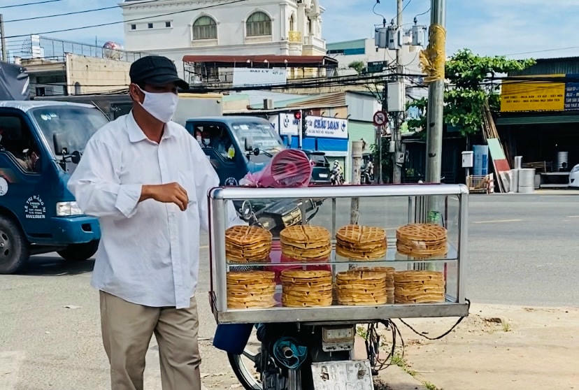 Theo người đàn ông này, bánh của anh hầu hết bán cho trẻ em, thanh thiếu niên học sinh nên thông thường anh hay đậu xe trước cửa trường học vào buổi trưa và buổi chiều. Bánh nướng đến đâu bán hết đến đó nên nhiều học sinh rất thích, giá cũng chỉ có 5 ngàn đồng/chiếc. Nhưng thời gian qua dịch bệnh nên các trường học chưa mở cửa trở lại, anh phải chạy xe vào các hẻm, đường nhỏ để rao bán. Vừa tốn chi phí xăng xe, vừa ít khách.