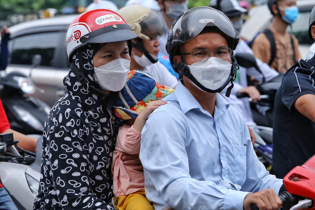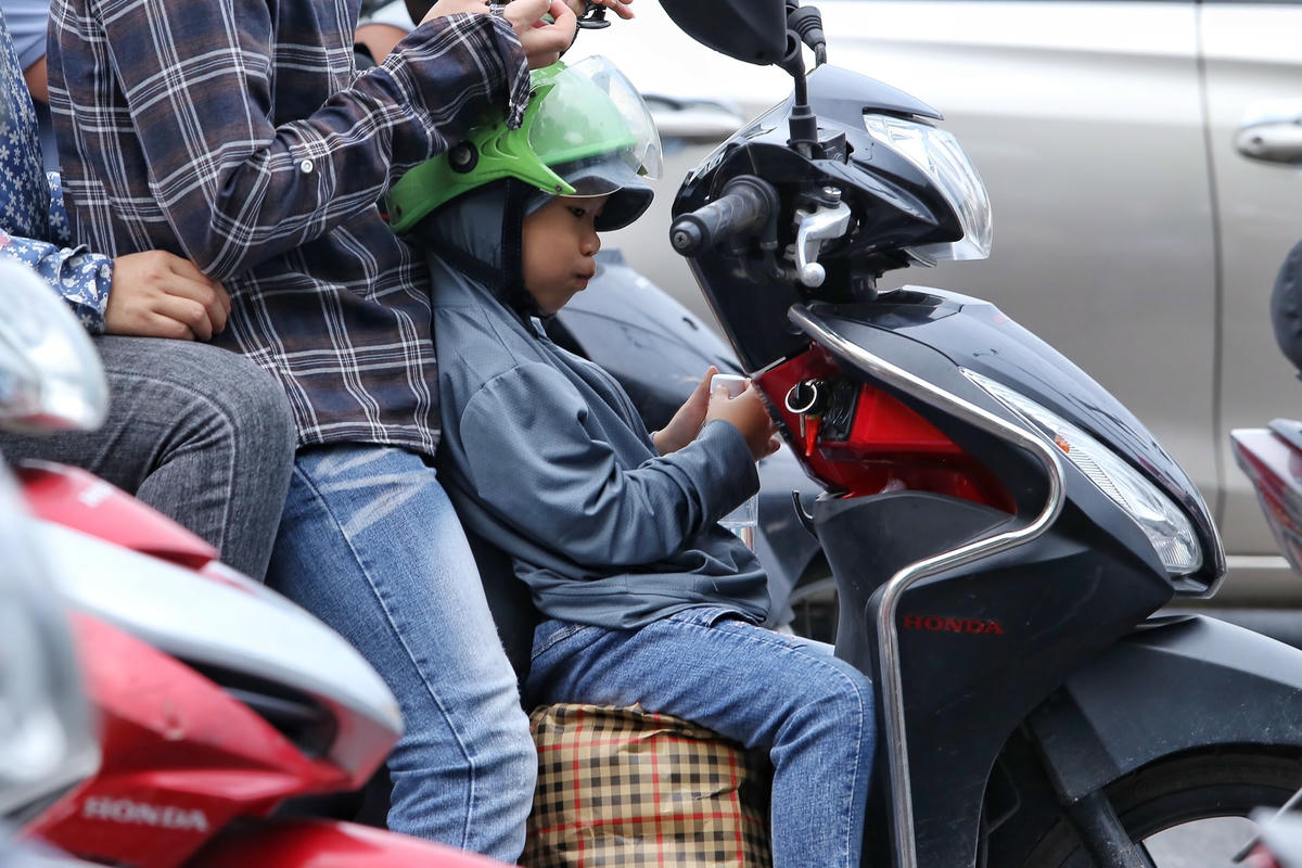 Sau kỳ nghỉ Lễ Quốc khánh dài đến 4 ngày, sáng 4/9 nhiều người bắt đầu đổ về Thủ đô để chuẩn bị cho ngày làm việc mới vào sáng mai. Để tránh bị ùn tắc giao thông, nhiều gia đình chọn cách đi vào sáng sớm khiến nhiều em nhỏ ngủ gật vượt đường xa.