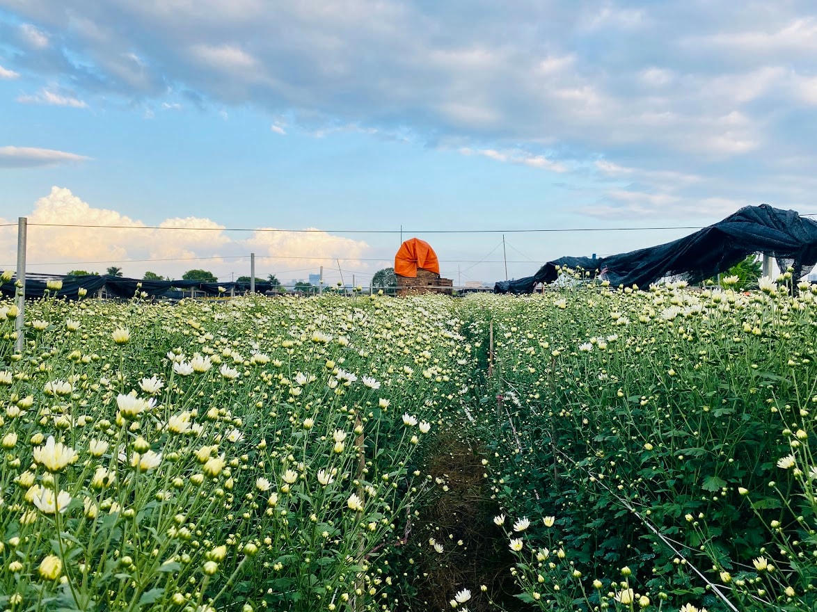 Ghé thăm làng hoa Tây Tựu (quận Bắc Từ Liêm, Hà Nội), dù đã vào cuối chiều nhưng vẫn thấy những người chủ vườn chăm chỉ cắt hoa. Mỗi bó hoa nặng chừng 3kg được chị Nhung - chủ một vườn hoa buộc lại thành từng đon rồi xếp chồng lên chiếc xe máy điện chuẩn bị chở về nhà. Chị Nhung cho biết mỗi đon hoa này bán được 500.000 đồng, nhưng khách hàng chủ yếu là khách buôn và các chợ đầu mối nên ngoài việc thu hoạch hoa còn phải mang về và chia thành từng bó nhỏ hơn, mỗi bó có giá từ 20.000 - 50.000 đồng. Những cây hoa cúc họa mi được cắt từ chiều hôm trước sẽ được thu mua vào đêm hoặc sáng sớm ngày hôm sau để kịp cho các buổi chợ. “Giá cúc họa mi năm nay rẻ hơn so với năm ngoái vì được mùa hơn, nên số lượng hoa bán ra thị trường nhiều. Không như năm trước vì dịch Covid-19 nên ít người chơi hoa, thế nên cũng ít người trồng, giá cũng đắt hơn. Năm nay mặc dù giá bán thấp nhưng sức mua lại dồi dào nên hàng bán cũng được kha khá”, chị Nhung chia sẻ.