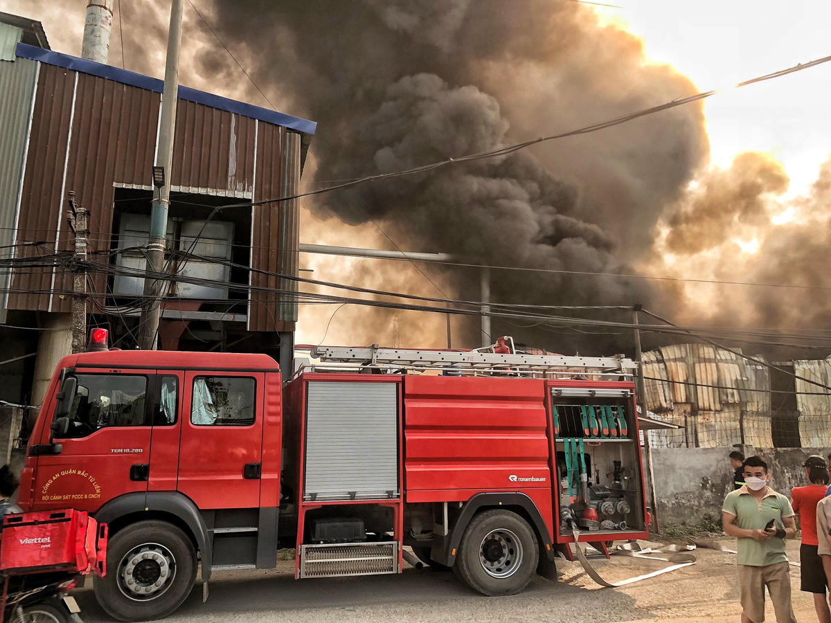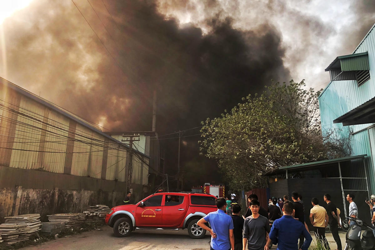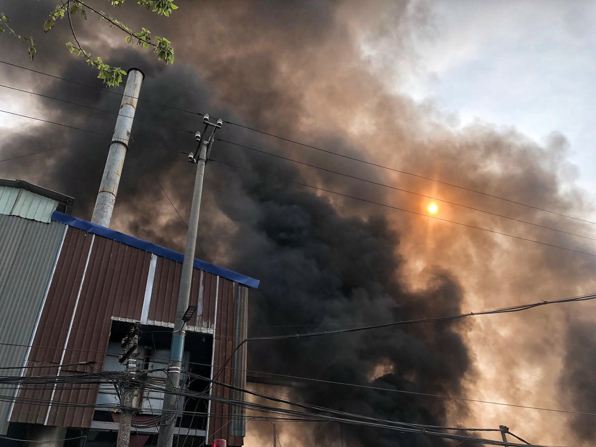 Khoảng 15h chiều 9/3, ngọn lửa cao hàng chục mét bùng phát tại khu vực nhà xưởng rộng khoảng 1.000 m2 có nhiều nguyên liệu xốp dễ cháy ở Cụm công nghiệp Phú Minh, quận Bắc Từ Liêm, Hà Nội.
