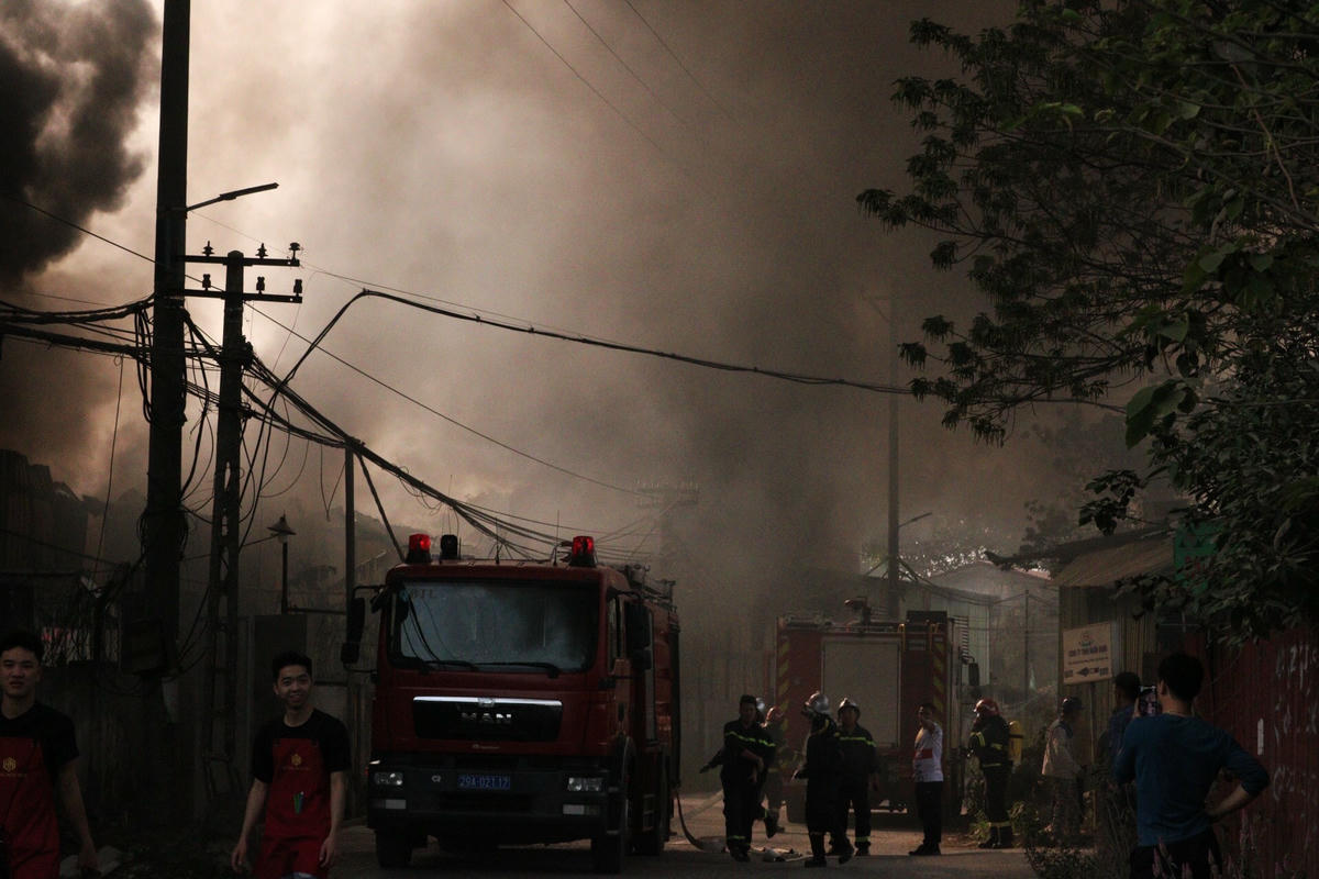 Theo đội Cảnh sát PCCC khoảng 15h chiều ngày 9/3, nhận được tin báo cháy tại Công ty TNHH và Sản xuất Tân Huy Hoàng nằm trong Cụm công nghiệp Phú Minh có địa chỉ tại phường Cổ Nhuế 2, quận Bắc Từ Liêm. Đội Cảnh sát PCCC đã ngay lập tức có mặt để tiến hành dập lửa.6 xe chữa cháy có mặt tại hiện trường để dập tắt đám cháy.Cột khói cao hàng chục mét đen xì.Đại diện đội Cảnh sát PCCC thông tin, diện tích khu vực đám cháy rộng khoảng 1.000 m2 là xưởng sản xuất xốp, các chất cháy chủ yếu là xốp thành phẩm...Tường và mái tôn của xưởng sản xuất xốp bị sập 1 phần do đám cháy.Chỉ chưa đầy 1h đồng hộ đội PCCC đã dập tắt được đám cháy.Phía bên trong xưởng sản xuất xốp.Những tấm xốp được người dân đưa ra khỏi đám cháy.Mái tôn bị hư hại nặng sau vụ cháy.