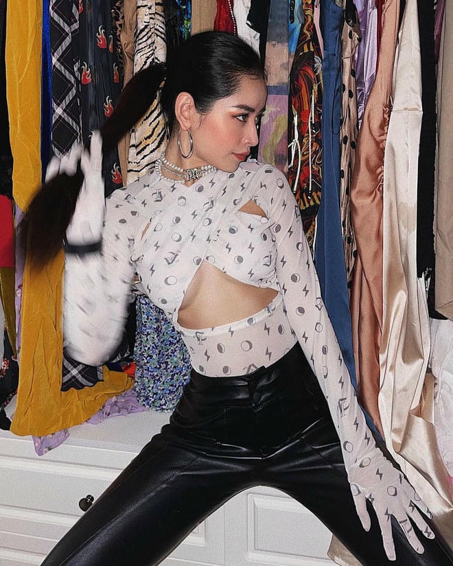 Những ngày du học ở Mỹ, Chi Pu ưu tiên chọn những chiếc váy body ôm sát, trang phục có đường cut-out hiểm hóc hoặc những bộ lingerie với cách phối không thể gợi cảm hơn.