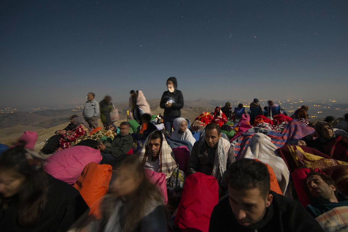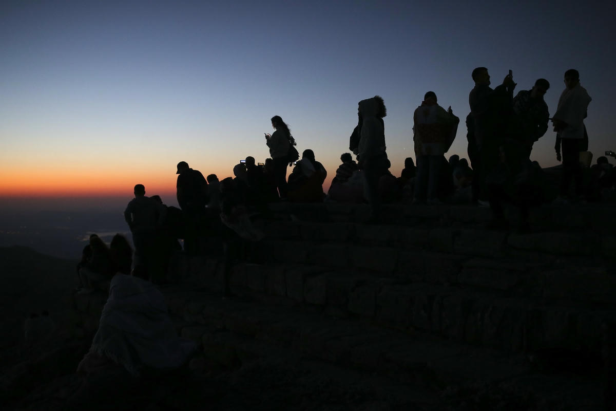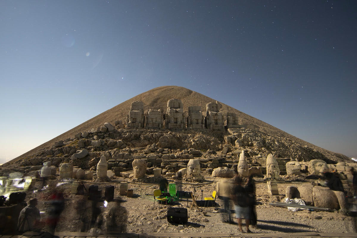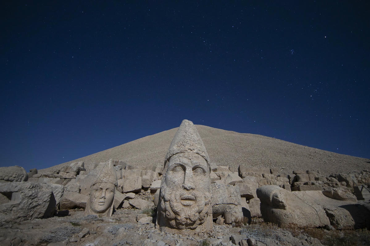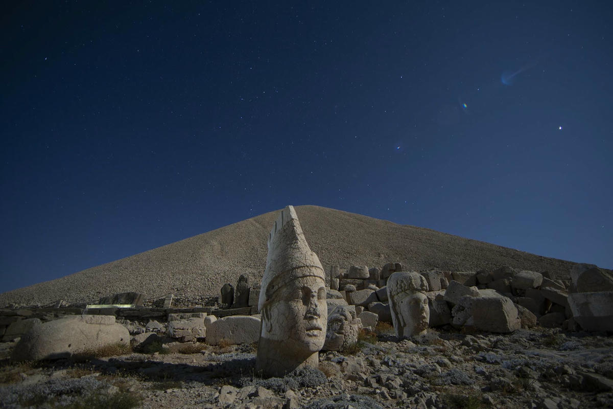 Những người đến ngắm mưa sao băng Perseid tại các địa điểm khác nhau ở Thổ Nhĩ Kỳ, bao gồm núi Nemrut ở phía đông nam, các tỉnh Kayseri và Eskişehir. Ảnh: AP.Nằm ở độ cao 2.150 mét, các bức tượng là một phần của quần thể đền thờ và lăng mộ Vua Antiochus I. Ảnh: AP.