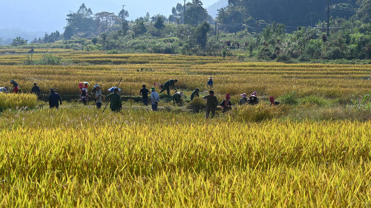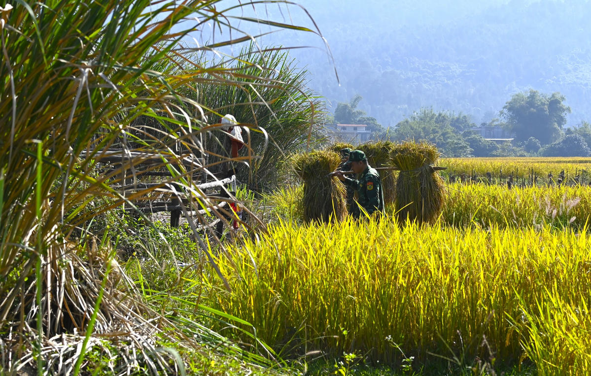 Do địa hình hiểm trở, diện tích trồng lúa của người dân xã Đồng Văn, huyện Bình Liêu (Quảng Ninh) chủ yếu ở khu vực đồi núi dốc nên việc thu hoạch gặp nhiều khó khăn. Do vậy, đến mùa gặt là cán bộ chiến sỹ Đồn biên phòng Hoành Mô lại có mặt giúp người dân thu hoạch lúa.