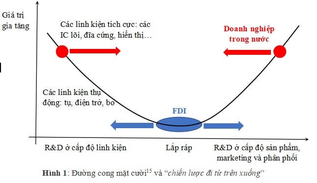 Trong một bài viết trước đây, tác giả đã đề xuất Việt Nam trong giai đoạn đến cần đi theo “chiến lược đi từ trên xuống”, tức đi trực tiếp vào công đoạn nghiên cứu và phát triển có giá trị gia tăng cao thay vì bắt đầu bằng khâu gia công, lắp ráp có giá trị gia tăng thấp và phân tích các điều kiện, nguồn lực quan trọng, đặc biệt là nguồn nhân lực mà Việt Nam có thể huy động để có thể thực hiện thành công chiến lược này.