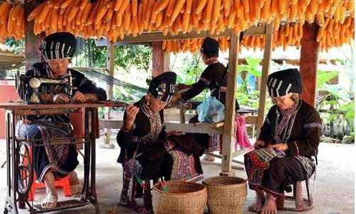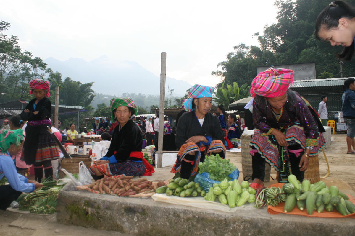 Tôi thấy ngay trước mắt mình vô vàn là váy, là áo, là vải thổ cẩm. Những chiếc váy của các dân tộc đều như hội tụ về đây, chúng được mắc, được treo trên những giá treo hàng hóa dài thành nhiều dãy. Lân la đến một “quầy” bán váy, tôi níu tay một cô gái Mông trẻ để... hỏi tên cô. Cô gái ngượng ngùng lấy tay che mặt. Cô Thùy Vân cười bảo: “Các chú hỏi tên hỏi tuổi sẽ chẳng ai nói cho biết đâu. Người dân tộc họ ý tứ lắm”. Tôi đành cười trừ, rất may cuối cùng cũng có mấy cháu gái nhỏ đồng ý chụp ảnh với một cô trong đoàn.
