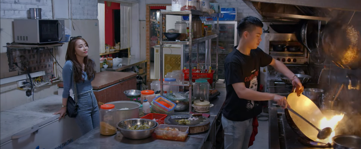 Nghe thấy vậy, Hào mới thách cô lên nấu thử. “Làm thì làm, sợ gì”, Minh khiêu khích ngược lại Hào. Sau đó cô để túi xách sang một bên, đi về chỗ bếp thử nấu. Do bản tính hậu đậu nên Minh vừa cầm vào nồi đã khiến nó suýt đổ. May mắn có Hào đứng đó đỡ nên không xảy ra đổ vỡ gì, nhưng ánh mắt của hai người vô tình chạm nhau.