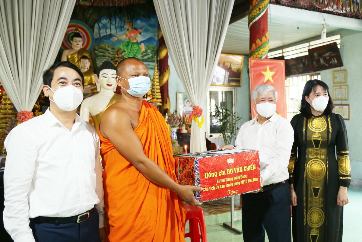 Tại các điểm đến, Chủ tịch Đỗ Văn Chiến thay mặt lãnh đạo Đảng, Nhà nước, MTTQ Việt Nam gửi tới các vị chư tăng bà con đồng bào dân tộc Khmer tỉnh Hậu Giang nói riêng và toàn quốc nói chung lời thăm hỏi thân tình, lời chúc mừng sức khoẻ bình an hạnh phúc, chúc bà con đón Tết cổ truyền Chol Chnam Thmay của đồng bào thật vui, an bình, nhiều may mắn.