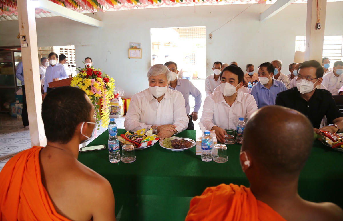 Chủ tịch Đỗ Văn Chiến cùng đoàn đã đến thăm chùa Ô ChumPrưKsa Ấp 6, xã Vị Thuỷ, huyện Vị Thuỷ và thăm Hội đoàn kết sư sãi yêu nước tỉnh Hậu Giang đặt tại điểm chùa SaSàNáRăngXây ở phường 4, TP Vị Thanh.