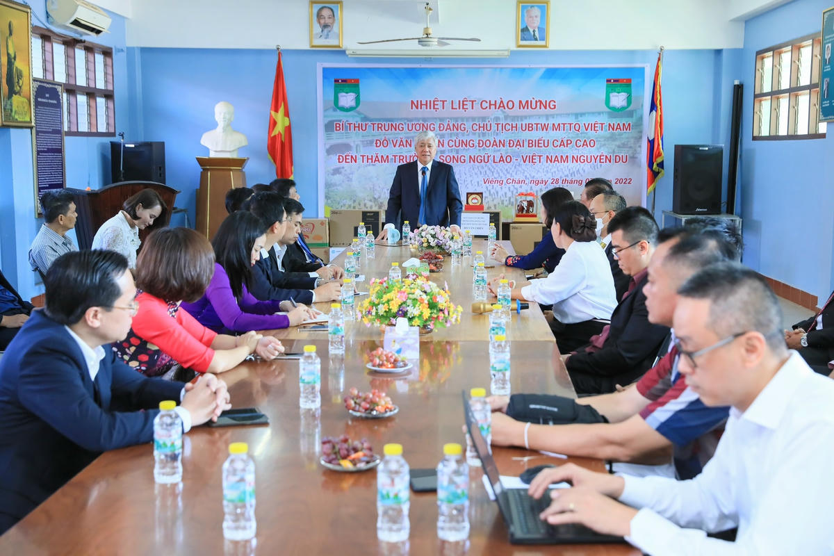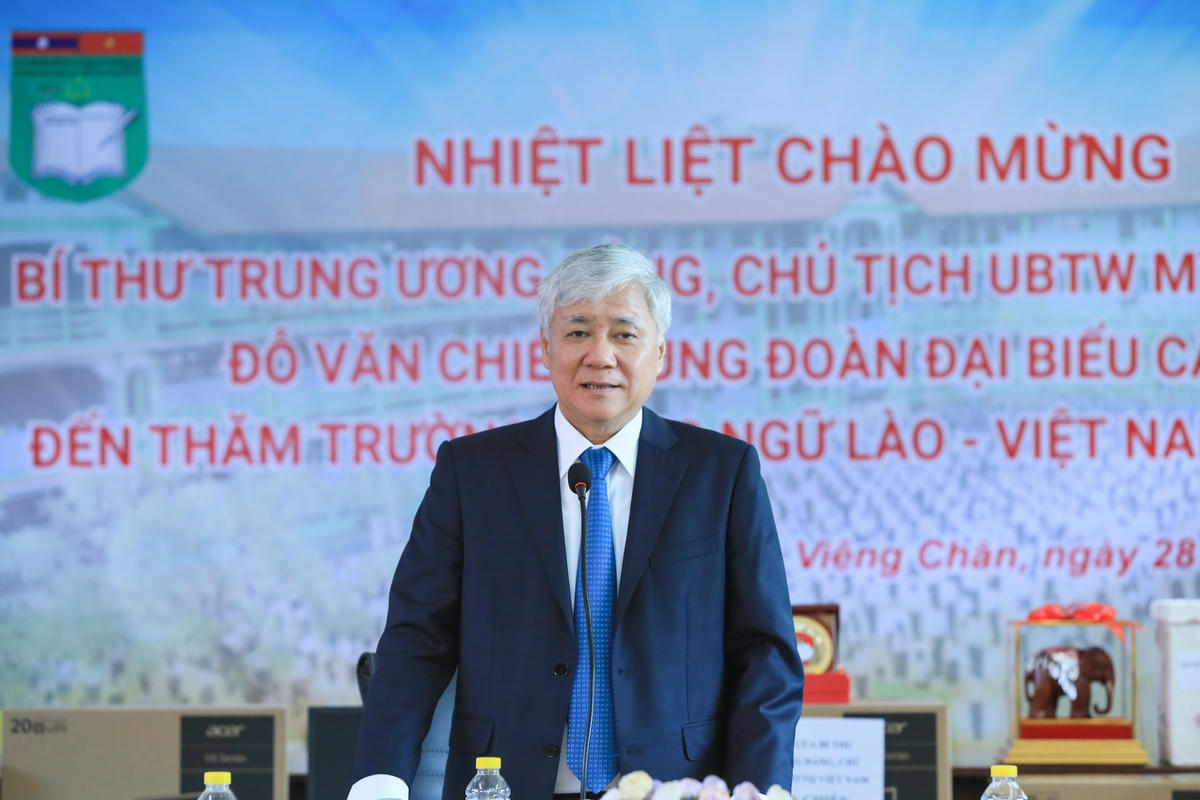 Trong khuôn khổ chương trình chuyến thăm hữu nghị chính thức nước CHDCND Lào, sáng 28/7, tại Thủ đô Vientiane, Bí thư Trung ương Đảng, Chủ tịch UBTƯ MTTQ Việt Nam Đỗ Văn Chiến đã tới thăm và tặng quà Trường song ngữ Lào - Việt Nam Nguyễn Du.