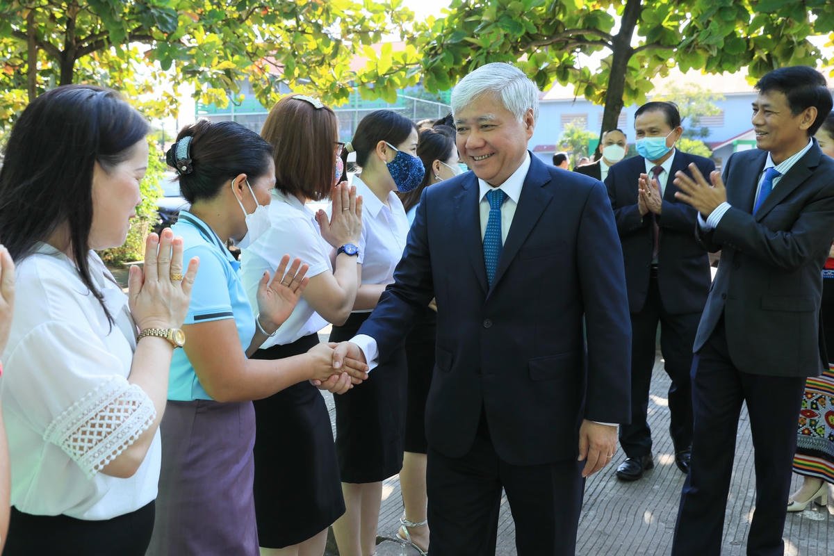 Gửi lời thăm hỏi ân cần đến tập thể các thầy cô giáo và học sinh Trường song ngữ Lào - Việt Nam Nguyễn Du, Bí thư Trung ương Đảng, Chủ tịch UBTƯ MTTQ Việt Nam Đỗ Văn Chiến chúc mừng, biểu dương những thành tích của nhà trường trong công tác dạy và học.