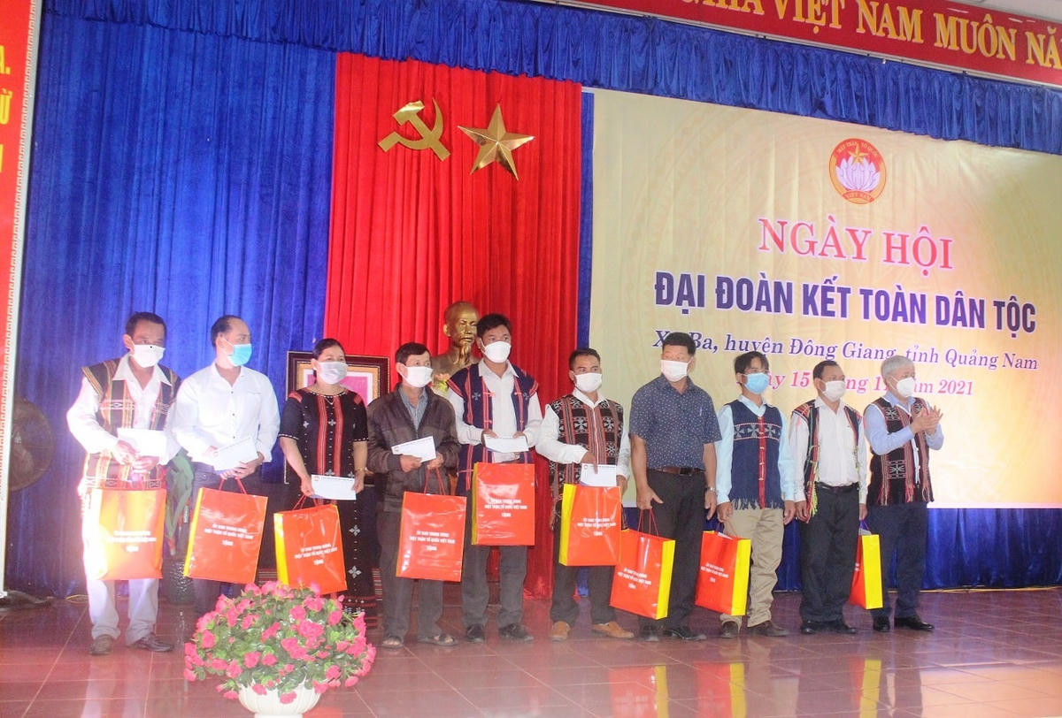 Bí thư Trung ương Đảng, Chủ tịch UBTƯ MTTQ Việt Nam Đỗ Văn Chiến, tặng 20 suất quà cho 20 hộ gia đình tiêu biểu ở xã Ba. UBND tỉnh Quảng Nam tặng 2 ngôi nhà Đại đoàn kết cho 2 hộ dân ở xã Ba và tặng 20 suất quà cho 20 hộ nghèo, cận nghèo, hộ có hoàn cảnh khó khăn ở xã này.