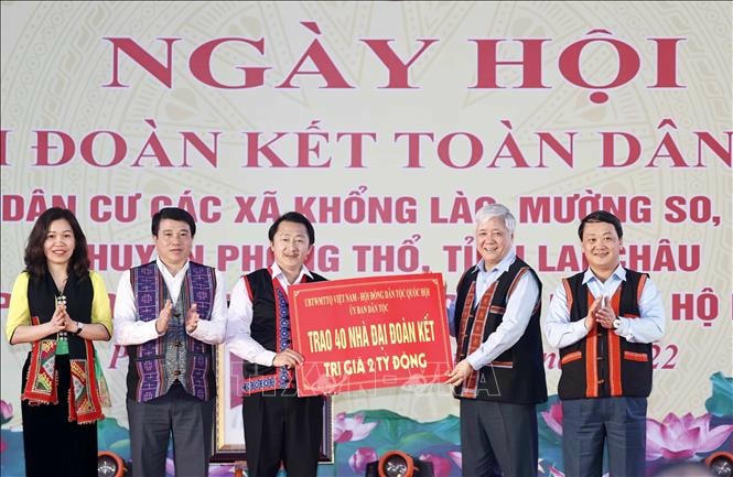 Chào mừng kỷ niệm 92 năm ngày thành lập Mặt trận Dân tộc Thống nhất Việt Nam - Ngày truyền thống MTTQ Việt Nam (18/11/930-18/11/2022), chiều 11/11, Chủ tịch nước Nguyễn Xuân Phúc đã về dự, chung vui “Ngày hội Đại đoàn kết toàn dân tộc” với đồng bào các dân tộc liên khu dân cư ba xã: Khổng Lào, Mường So, Hoang Thèn, huyện Phong Thổ, tỉnh Lai Châu.