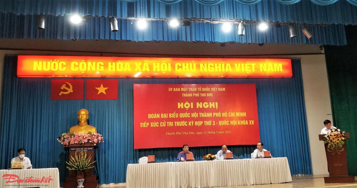 Chiều 11/5, tại Nhà thiếu nhi TP Thủ Đức, TP HCM, Ủy ban MTTQ Việt Nam TP Thủ Đức đã tổ chức Hội nghị Đoàn Đại biểu Quốc hội (ĐBQH) TP HCM tiếp xúc cử tri trước kỳ họp thứ 3 Quốc hội khóa XV.