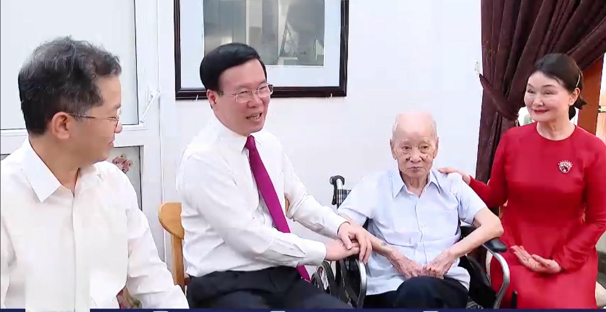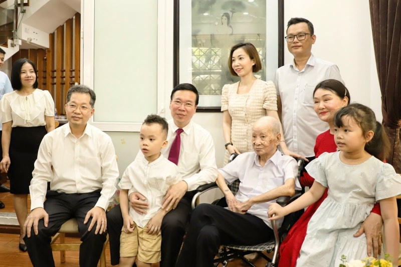 Thay mặt lãnh đạo Đảng, Nhà nước, Chủ tịch nước Võ Văn Thưởng gửi lời chúc sức khỏe, hạnh phúc đến Nhà giáo Nhân dân Nguyễn Trọng Hoàng và gia đình nhân Ngày gia đình Việt Nam.
