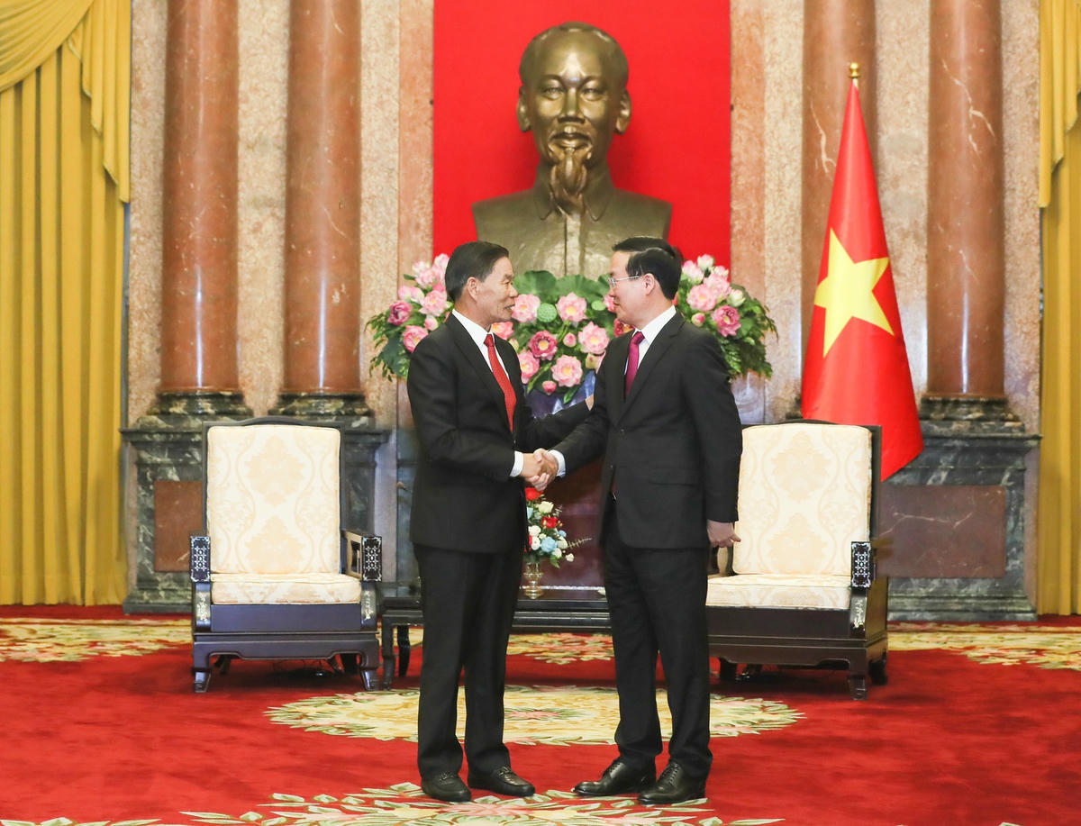 Chiều 25/4, tại Phủ Chủ tịch, Chủ tịch nước Võ Văn Thưởng đã tiếp ông Sinlavong Khoutphaythoune - Ủy viên Bộ Chính trị Đảng Nhân dân Cách mạng Lào, Chủ tịch Ủy ban Trung ương Mặt trận Lào xây dựng đất nước và Đoàn công tác đang có chuyến thăm và làm việc tại Việt Nam.