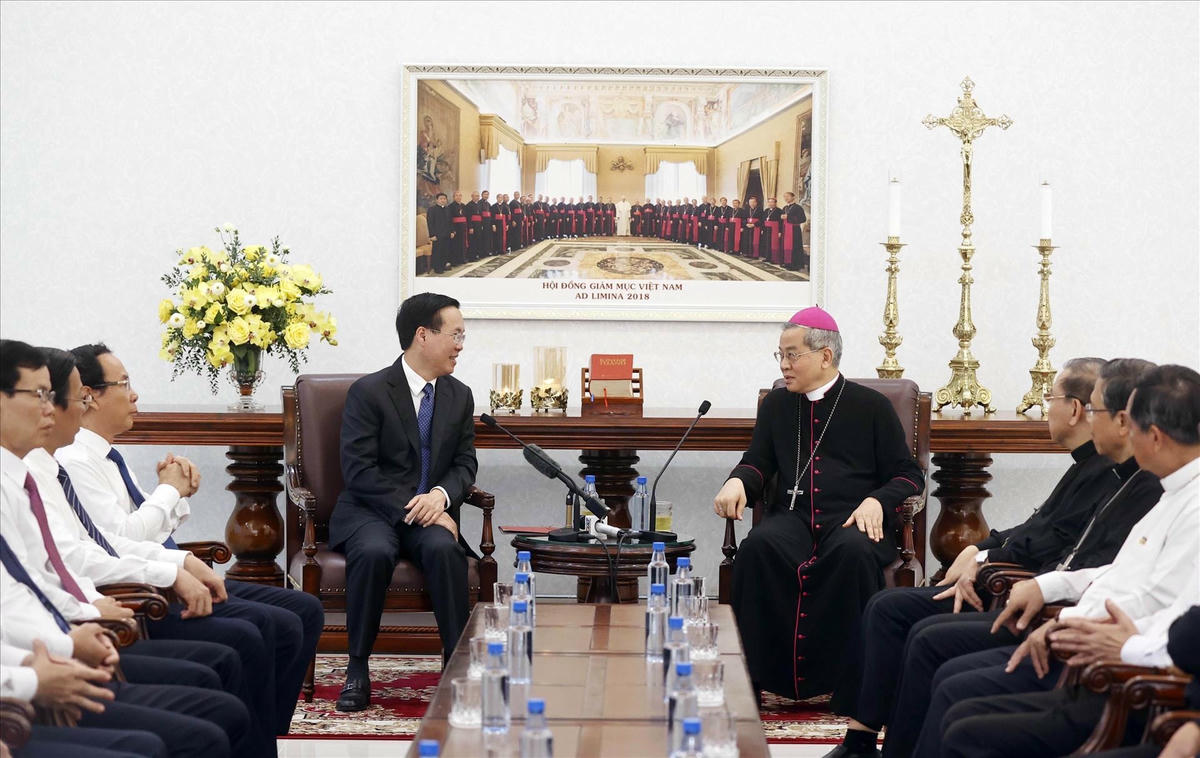 Sau thành công tốt đẹp của chuyến thăm Tòa thánh Vatican, hội kiến Giáo hoàng Francis, sáng 7/8, Chủ tịch nước Võ Văn Thưởng đã tới thăm, gặp gỡ Hội đồng Giám mục Việt Nam tại Văn phòng Hội đồng Giám mục Việt Nam, trụ sở đặt tại TP Hồ Chí Minh.