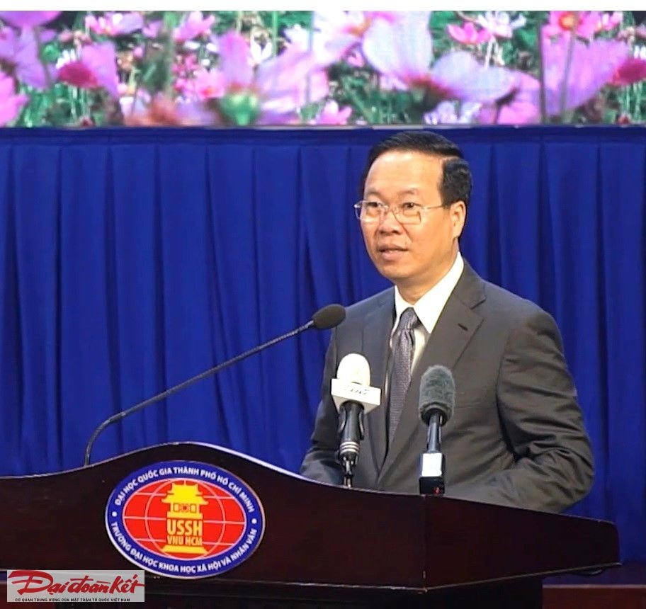 Dịp này, Chủ tịch nước Võ Văn Thưởng đã gửi lời chúc mừng đến các thầy cô trường Đại học Khoa học Xã hội và Nhân văn TP HCM nhân dịp kỷ niệm ngày hiến chương Nhà giáo Việt Nam 20-11 sắp tới. Đồng thời, Chủ tịch nước tiếp tục khẳng định về chủ trương, chính sách của Đảng và Nhà nước về vai trò của đội ngũ tri thức trong lĩnh vực khoa học xã hội và nhân văn đối với sự nghiệp xây dựng và bảo vệ Tổ quốc trong giai đoạn hiện nay.