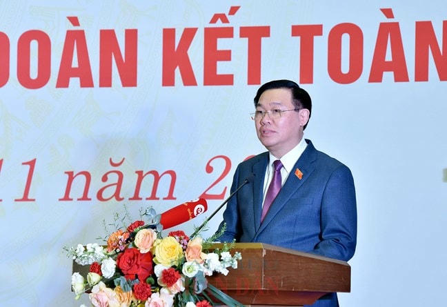 "Trong sự nghiệp cách mạng và công cuộc xây dựng, bảo vệ Tổ quốc hiện nay, Đảng và Nhà nước luôn xác định đại đoàn kết toàn dân tộc là một trong những nguyên tắc “sống còn” đối với nước ta - một quốc gia thống nhất của 54 dân tộc anh em" - Ủy viên Bộ Chính trị, Chủ tịch Quốc hội Vương Đình Huệ nhấn mạnh tại cuộc gặp mặt đại biểu Quốc hội Khóa XV là người dân tộc thiểu số, nhân sỹ, trí thức, chức sắc tôn giáo và nhà giáo nhân Ngày hội Đại đoàn kết toàn dân tộc vừa diễn ra tối 14/11 tại Nhà Quốc hội.
