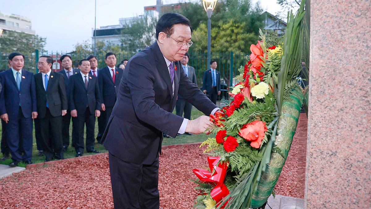 Trong khuôn khổ chuyến thăm chính thức Argentina, ngay trong chiều 23/4 (theo giờ địa phương), tại thủ đô Buenos Aires, Chủ tịch Quốc hội Vương Đình Huệ cùng Đoàn đại biểu cấp cao Quốc hội Việt Nam đặt vòng hoa tại Tượng đài Chủ tịch Hồ Chí Minh.