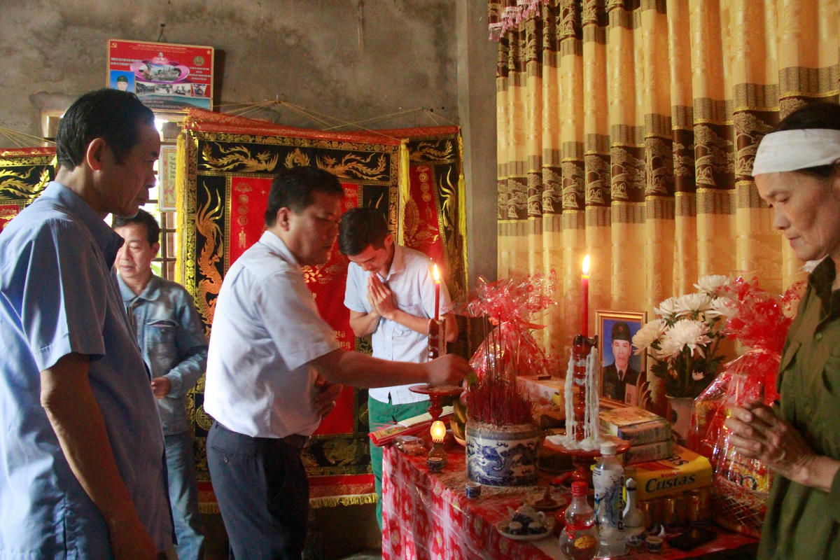Thắp nén hương cho người qua đời, ông Trần Công Thuật, Chủ tịch UBND tỉnh Quảng Bình bày tỏ sự tiếc thương đối với gia đình ông Hoàng Thái Nhân.