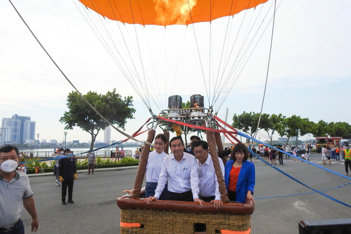 Chủ tịch UBND TP Đà Nẵng Lê Trung Chinh, Hoa hậu Thế giới Việt Nam 2019 Lương Thùy Linh, đã cùng trải nghiệm bay khinh khí cầu bên bờ sông Hàn, chính thức phục hồi lại các hoạt động du lịch sôi động ở thành phố này sau hơn 2 năm gián đoạn vì dịch Covid-19.