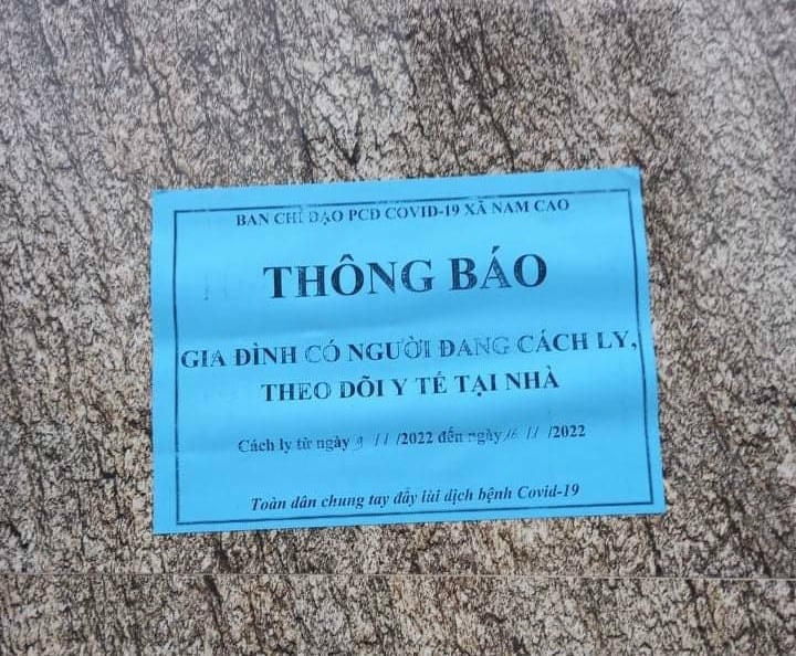 Nhà bà S. sau đó được treo biển: "Ban chỉ đạo phòng chống dịch Covid-19 xã Nam Cao. Thông báo: Gia đình có người cách ly, theo dõi y tế tại nhà từ ngày 9/1 đến ngày 16/1/2022".